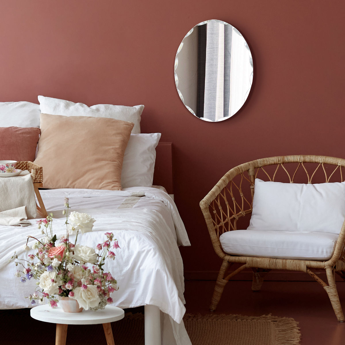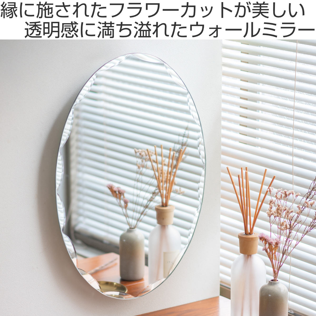 フラワーカットを施したミラーのフチが花のように美しいミラー