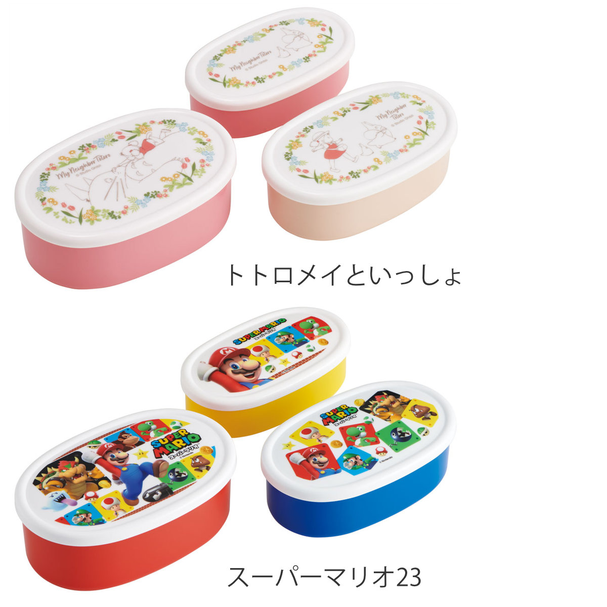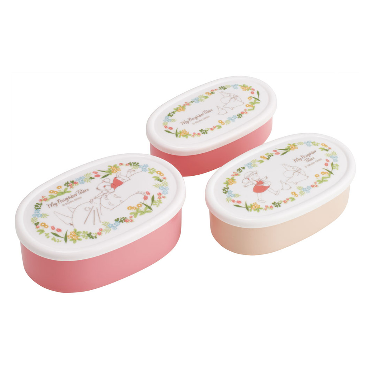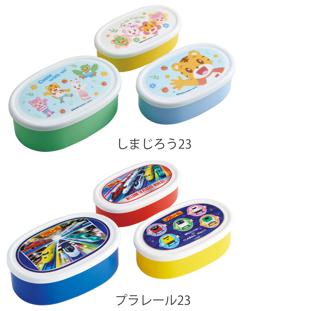 3サイズが1セットになったランチボックスです。抗菌加工が施されているのでお子様も安心です。大サイズが約400ml、中サイズが約280ml、小サイズが約180mlです。ご飯、おかず、デザートなどメニューによって容器を使い分けることができます。お弁当箱としてだけではなく、保存容器としてもお使いいただけます。