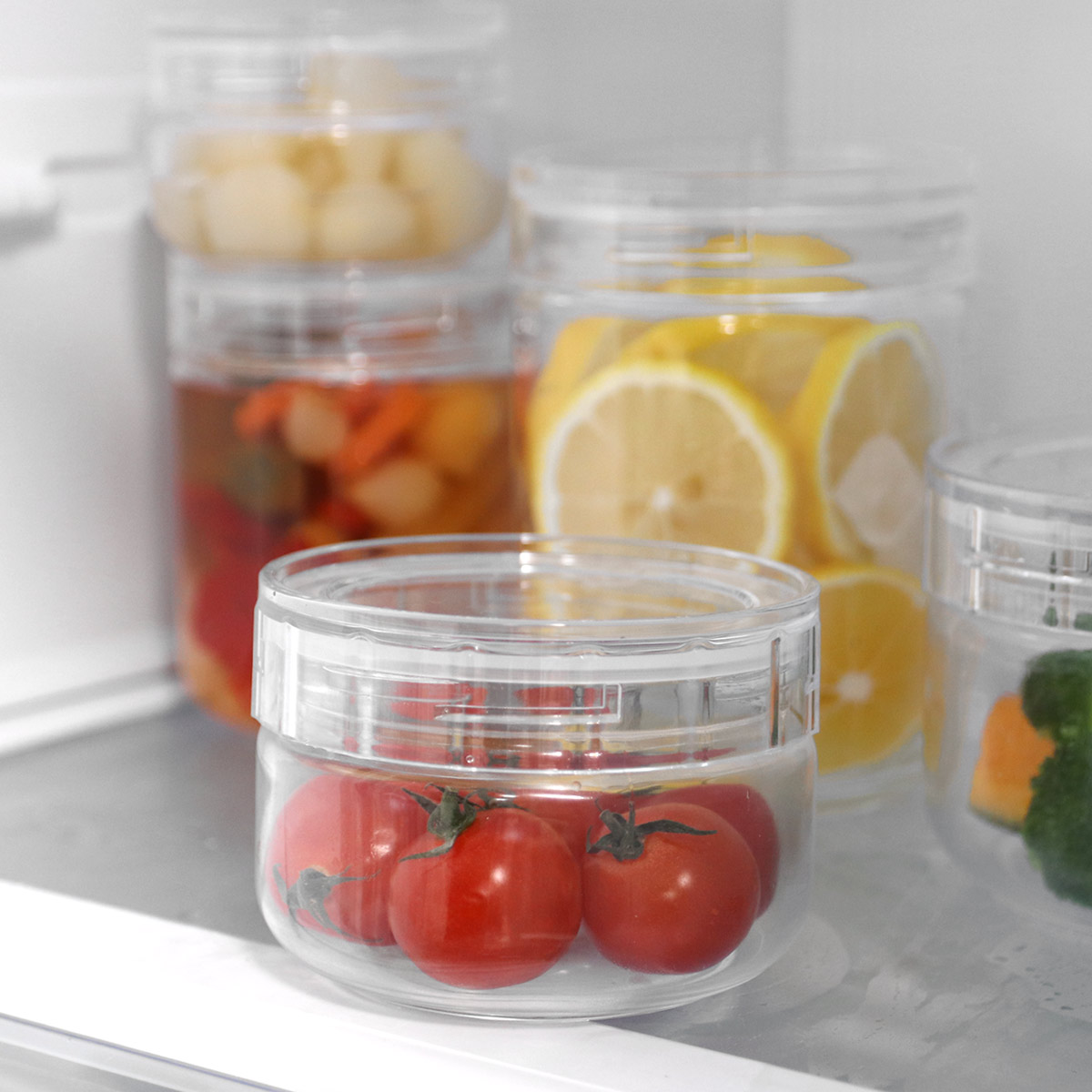 上からも横からも中身が見える完全透明な保存容器です。引き出しや戸棚、冷蔵庫などどこに置いても中身や残量がひと目で分かります。使う時に迷わずサッと取り出せるので、お料理が効率良く進みます。