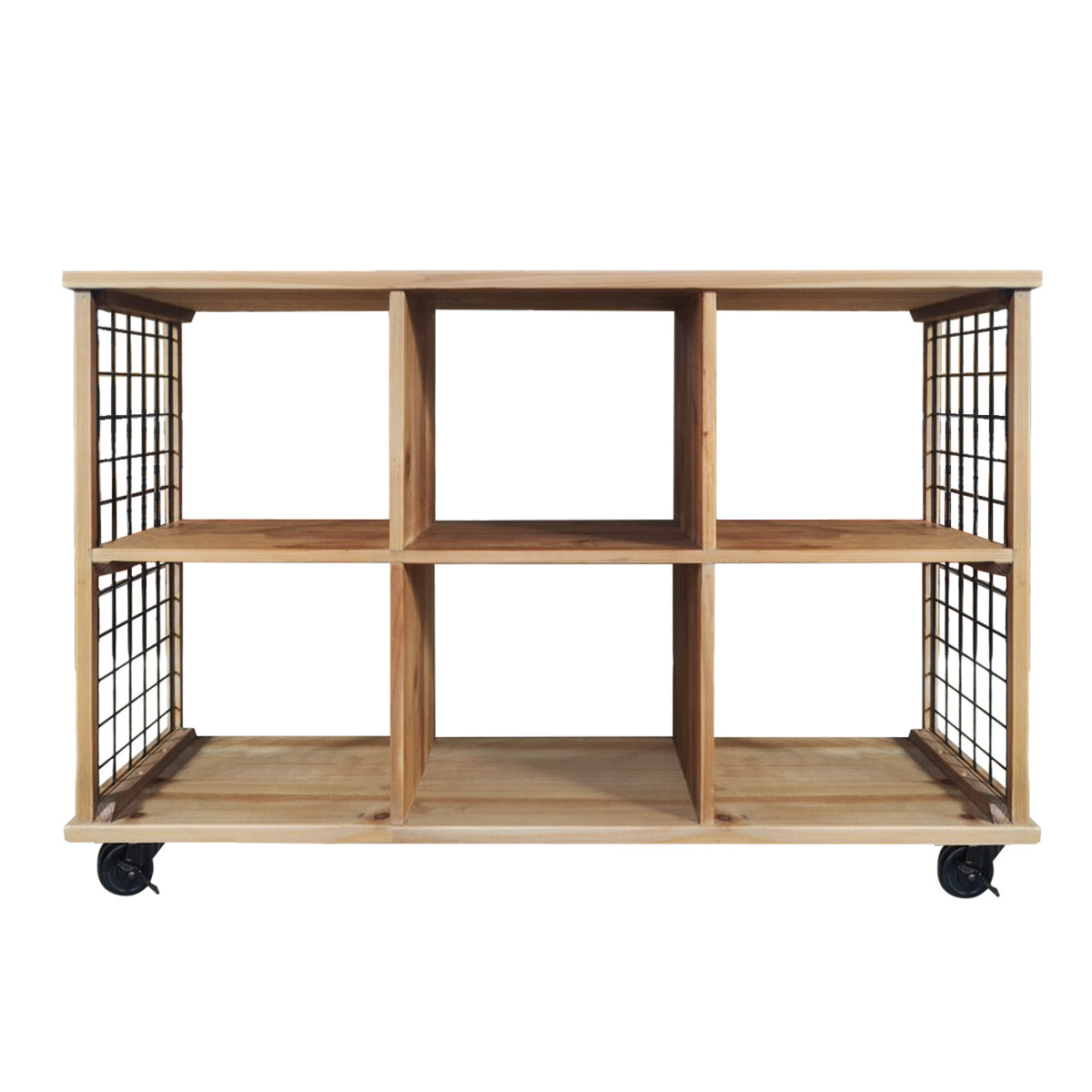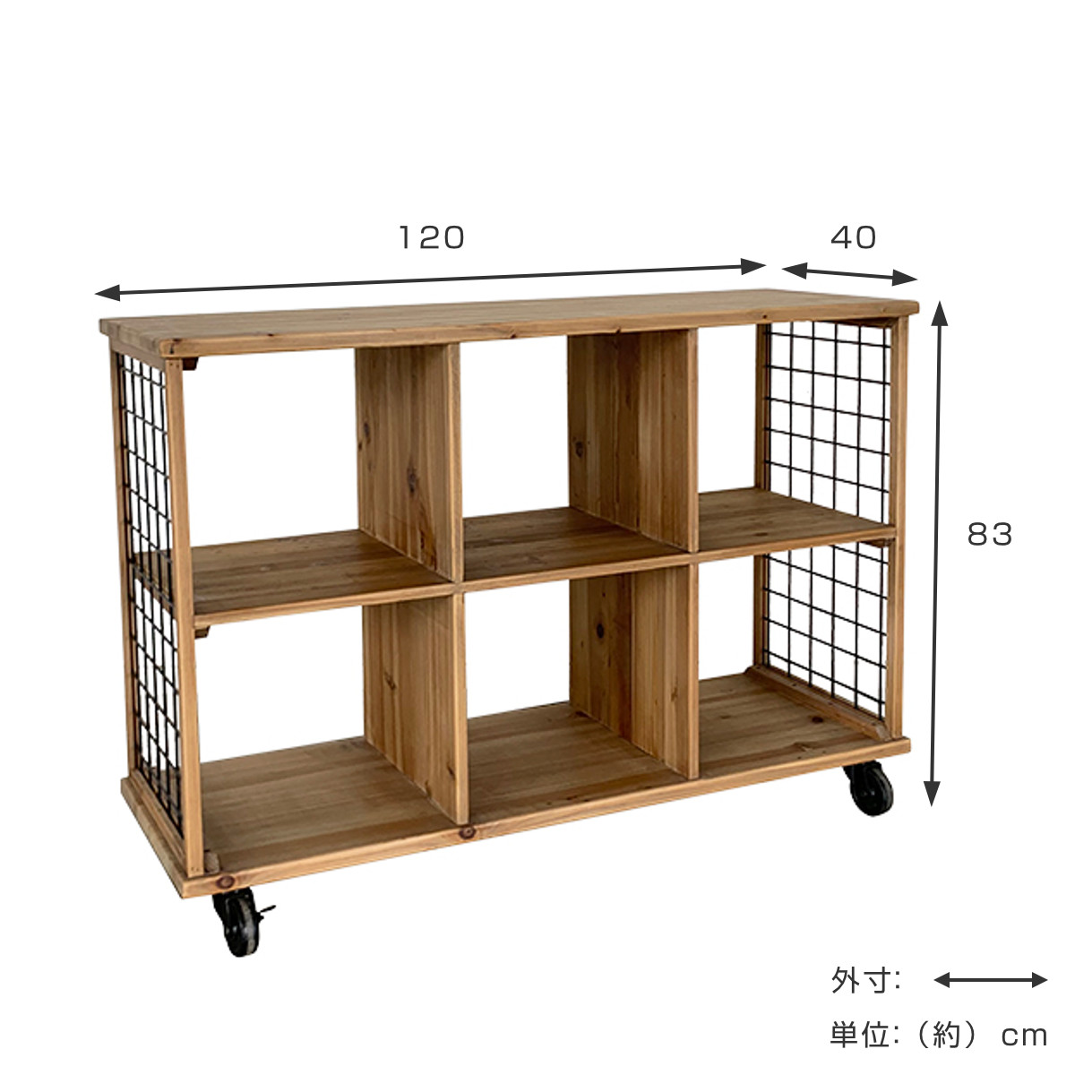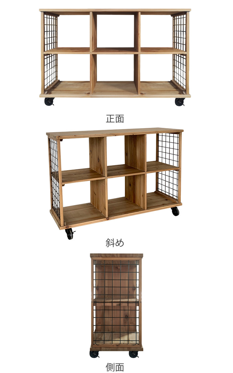 ローシェルフ 2段6マス 杉古材 キャスター付 幅120cm ( 収納ラック 棚 本棚 ラック シェルフ 飾り棚 収納 リビング収納 チーク無垢材 天然木 木製 古材 完成品 )