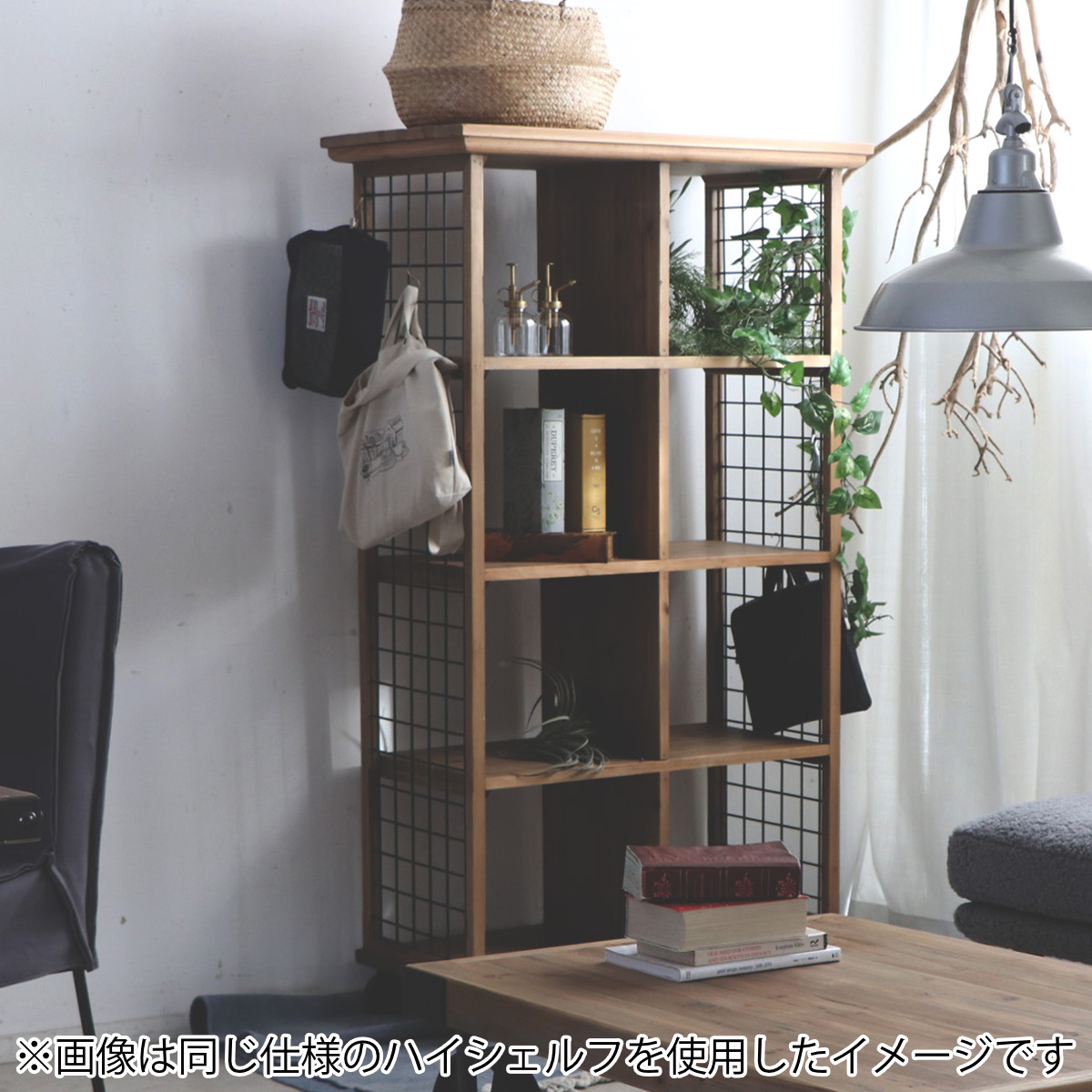 杉古材とスチールとの組み合わせがお洒落なローシェルフ