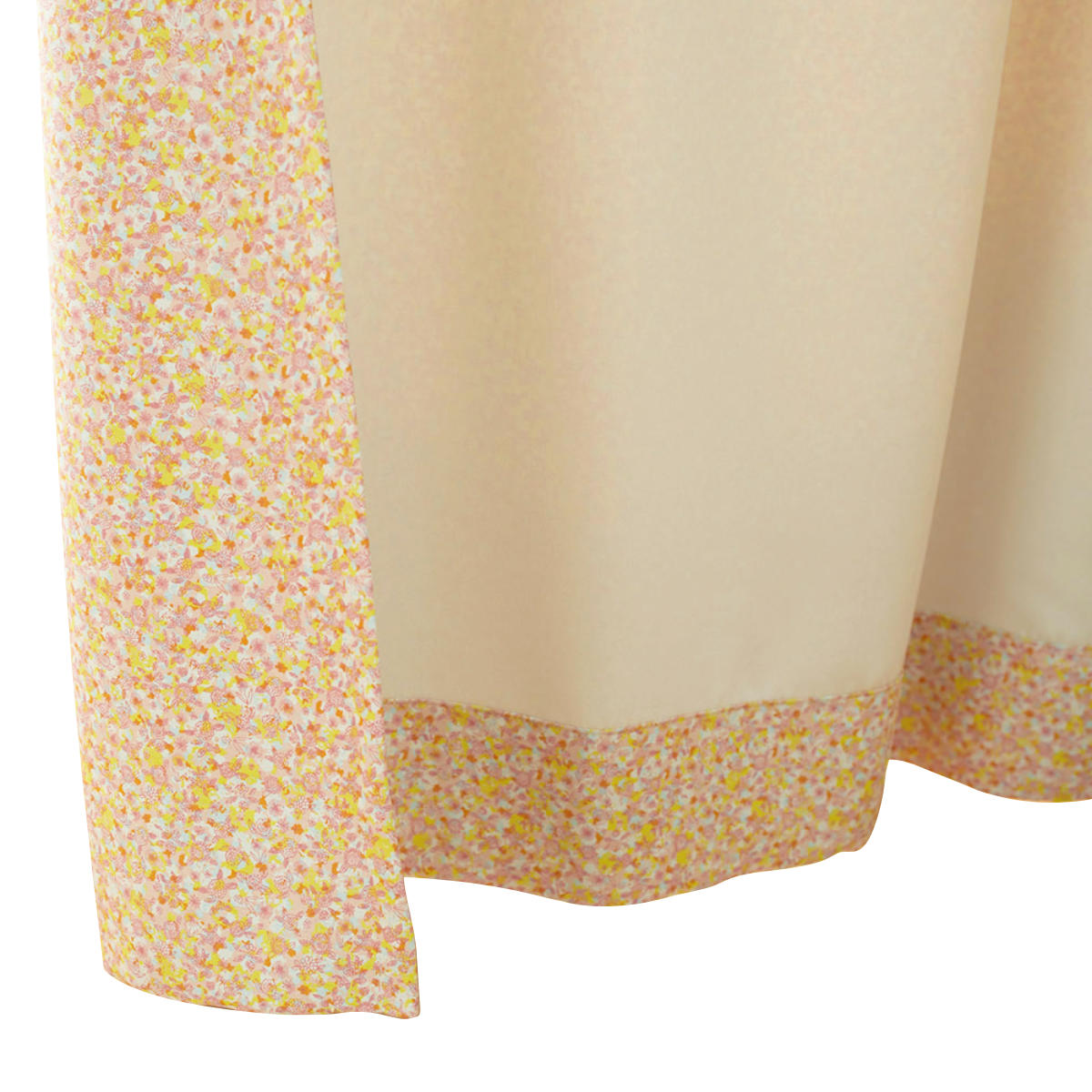表地はベーシックな無地、裏面には繊細な小花柄をプリントしたカーテンです。サイドと裾から表側に、北欧風の花柄がさりげなく覗きます。遮光・形状記憶加工・ウォッシャブル仕様など機能性にも優れており、デザイン性、機能性共に抜群なのでインテリアにこだわりたい方にもぴったりです。