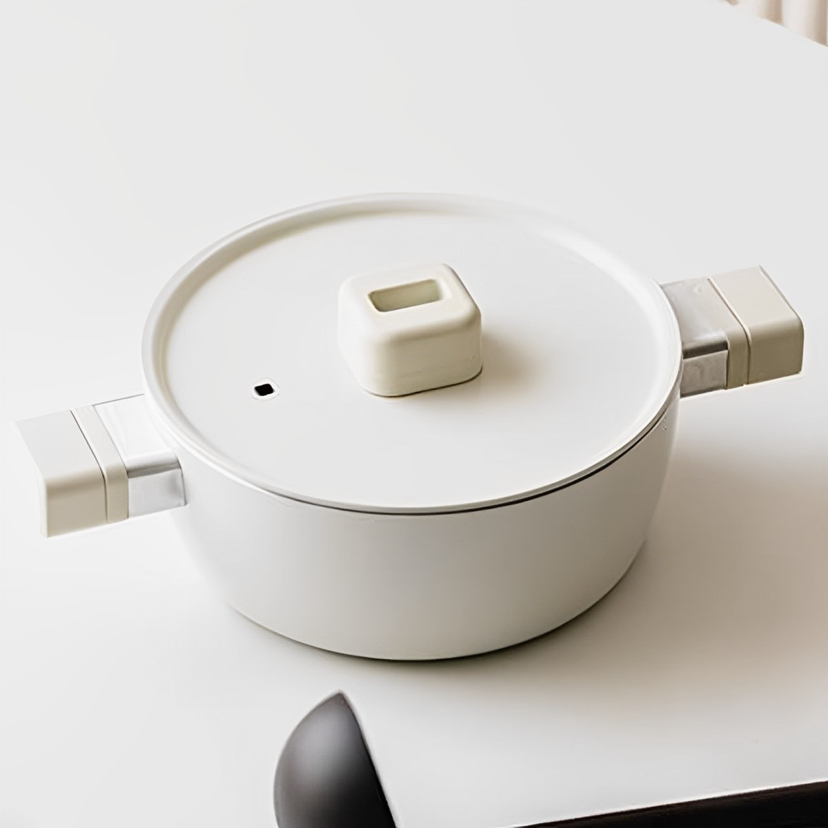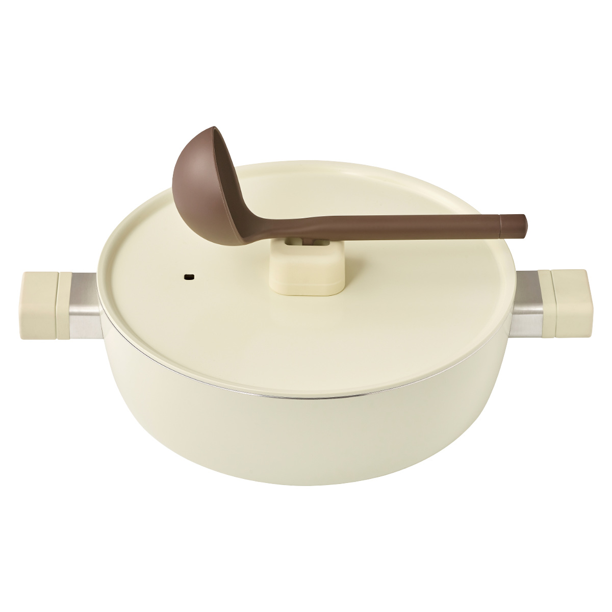 カレーや煮物など、毎日の料理に活躍する24cmの浅型両手鍋です。セラミックコーティングの遠赤外線効果で、食材の芯までしっかり火が通ります。食卓にそのまま出してもおしゃれなデザインなので、家族で鍋を囲みたいときにも活躍します。