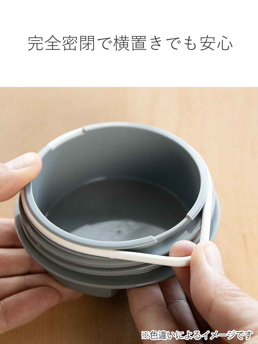 パッキン付きで漏れる心配がなく、密閉性が高いので縦にも横にも保存できます。