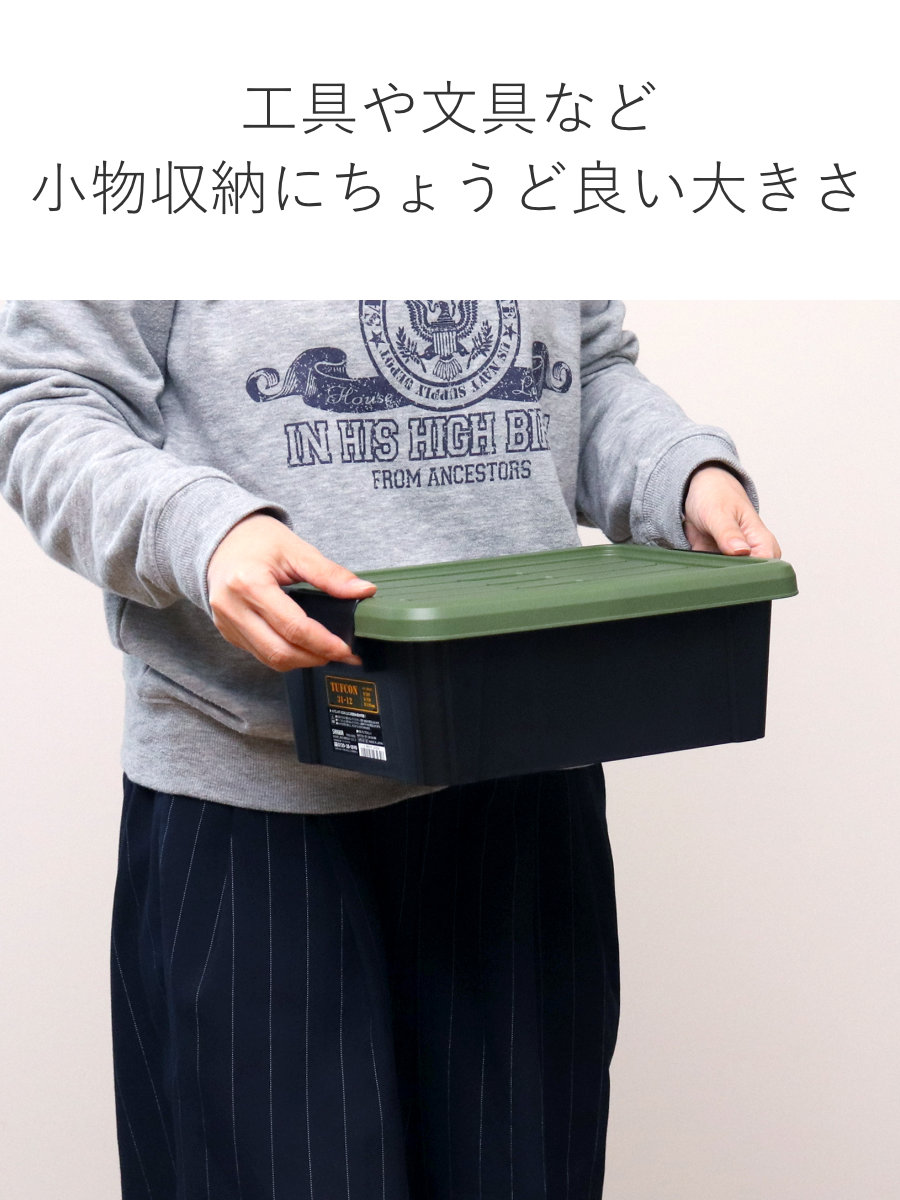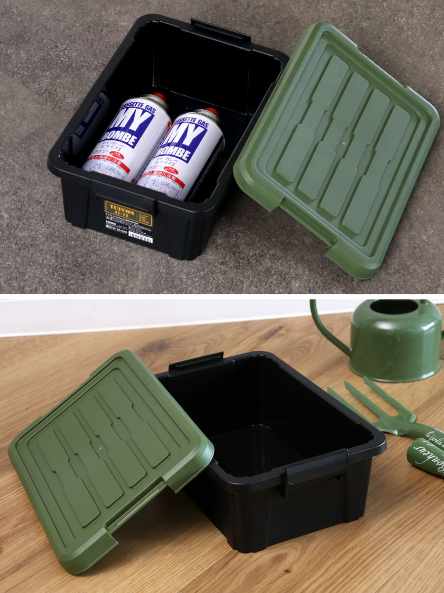 日用品や工具などを収納しておくのに便利な収納ボックスです。細かいものをざっくり入れてもフタを閉めることで生活感を隠すことができます。ミリタリーテイストなデザインでリビングやキッチンなど見えるところに置いてもスタイリッシュさを保てます。