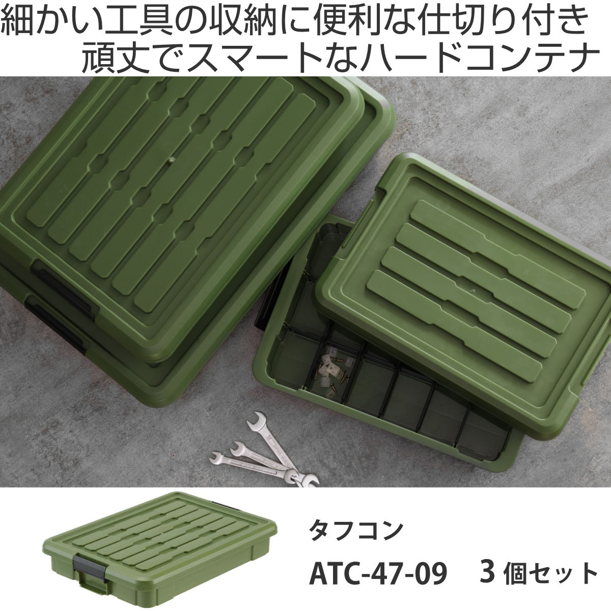 収納ボックス 3個セット Nタフコン ATC-47-09 フタ付き 幅32.5×奥行46.5×高さ8.5cm ( 収納ケース 頑丈 収納 工具箱 コンテナ 丈夫 ロック付き 日本製 屋外 積み重ね スタッキング プラスチック ボックス ケース BOX アウトドア )