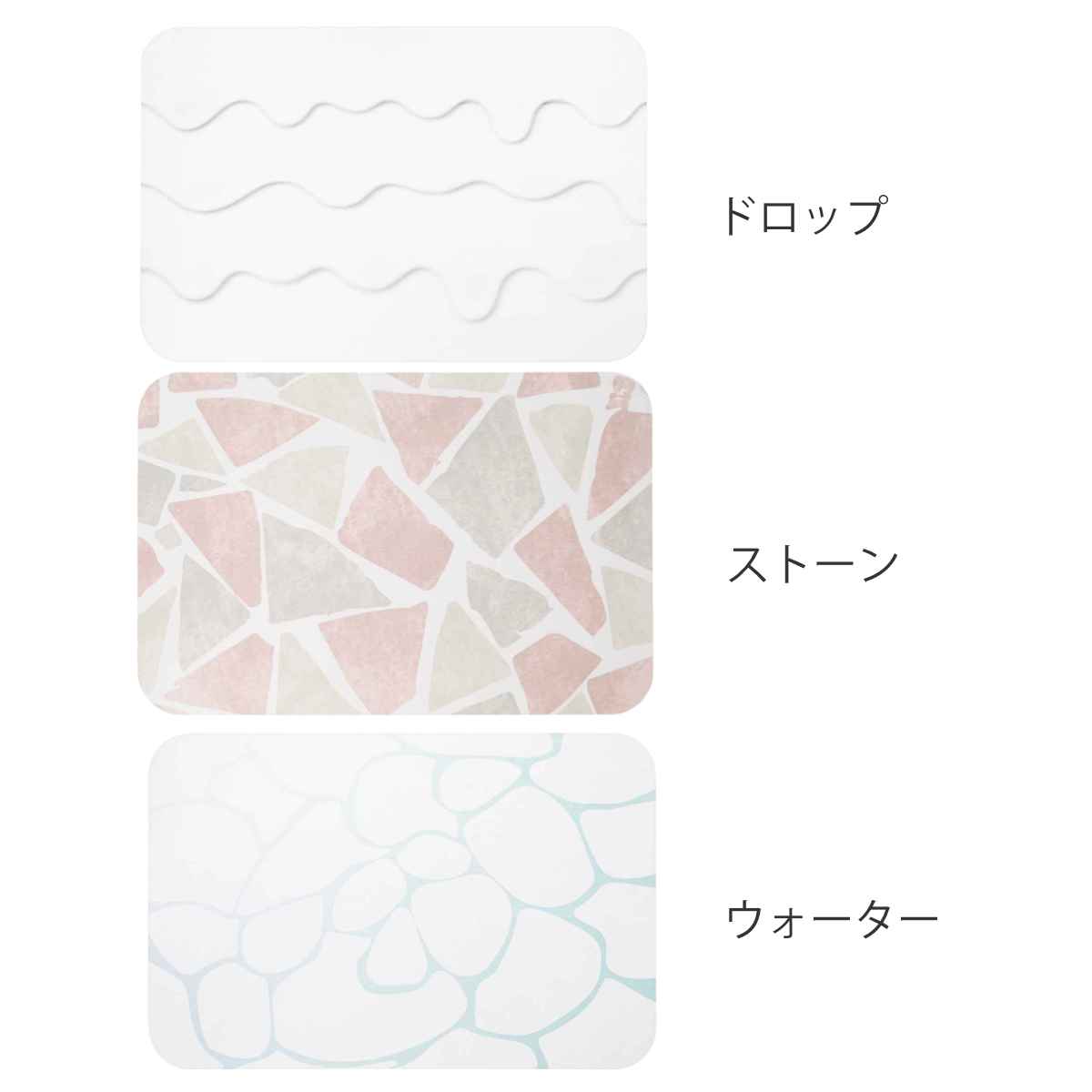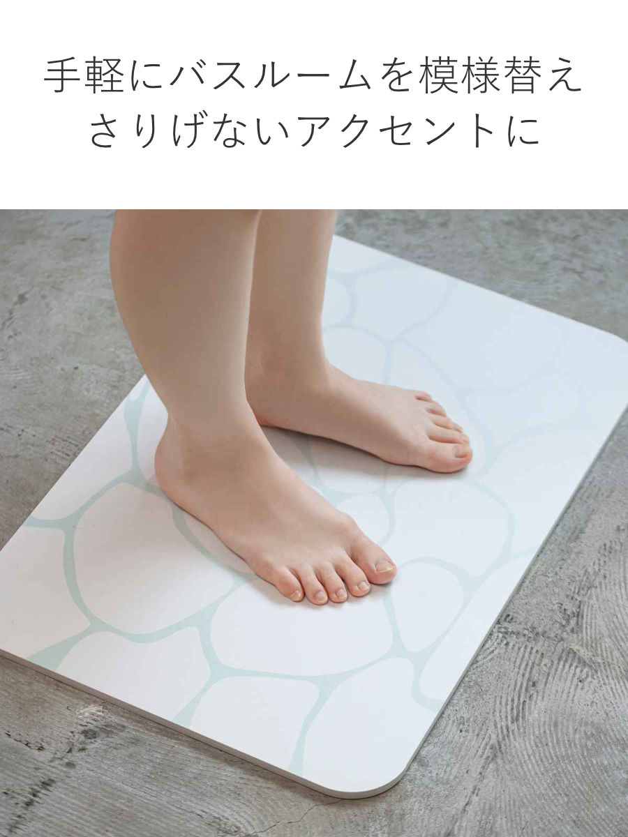 インテリアに合わせやすいシンプルなパターンなので、さりげないアクセントに。従来の無地のバスマットだと少し物足りないと感じる方におすすめです。