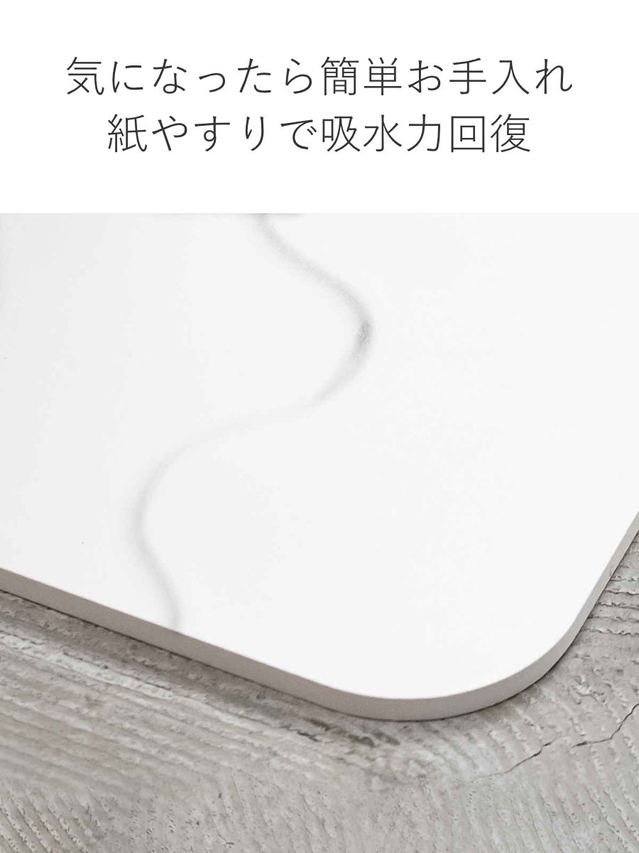 目詰まりなどで吸水力が落ちたと感じたら、付属の紙やすりで表面を薄く削ることで本来の吸水性が回復します。