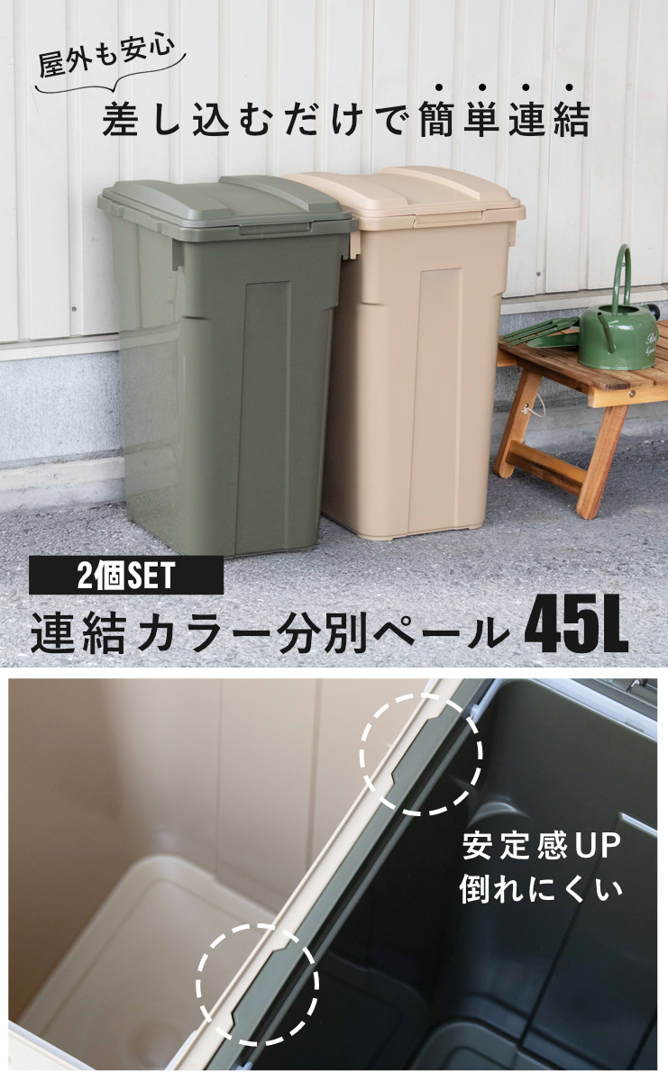 | 注意事項 | ※同サイズ商品(45L)のみ連結可能です ※連結ハンドルペールとは連結できません |