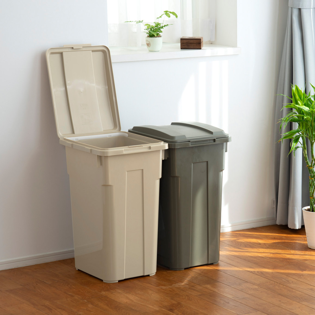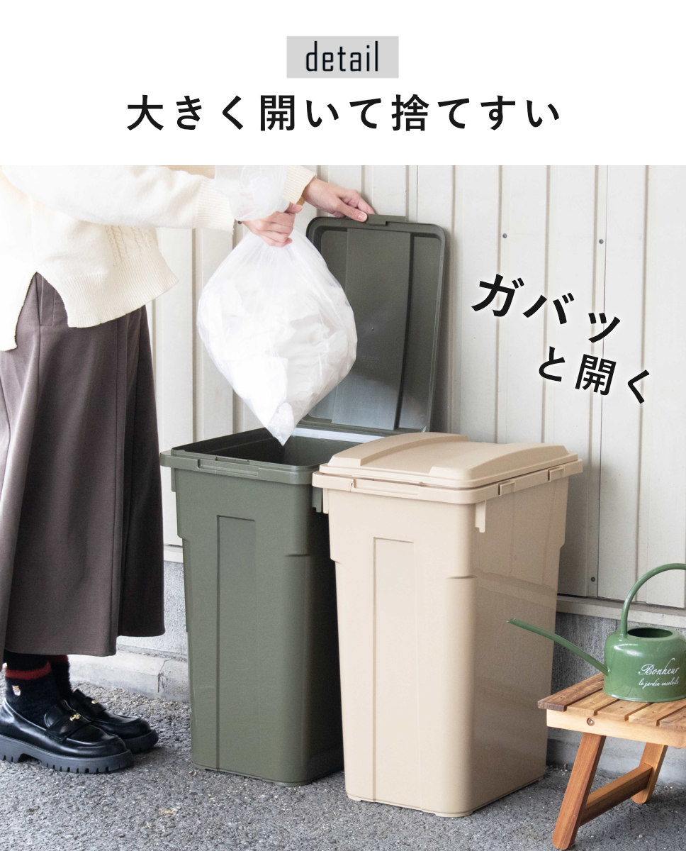 並べても場所を取らないスリム設計だから玄関やベランダにも。溜まったゴミを収集日まで部屋に置きたくない人におすすめです。