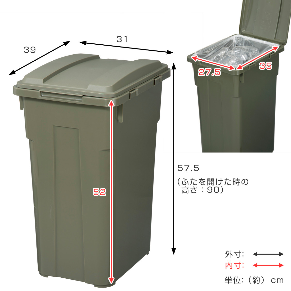 | 対応サイズ | 口幅65×高さ80(cm)以上のポリ袋をご使用ください |