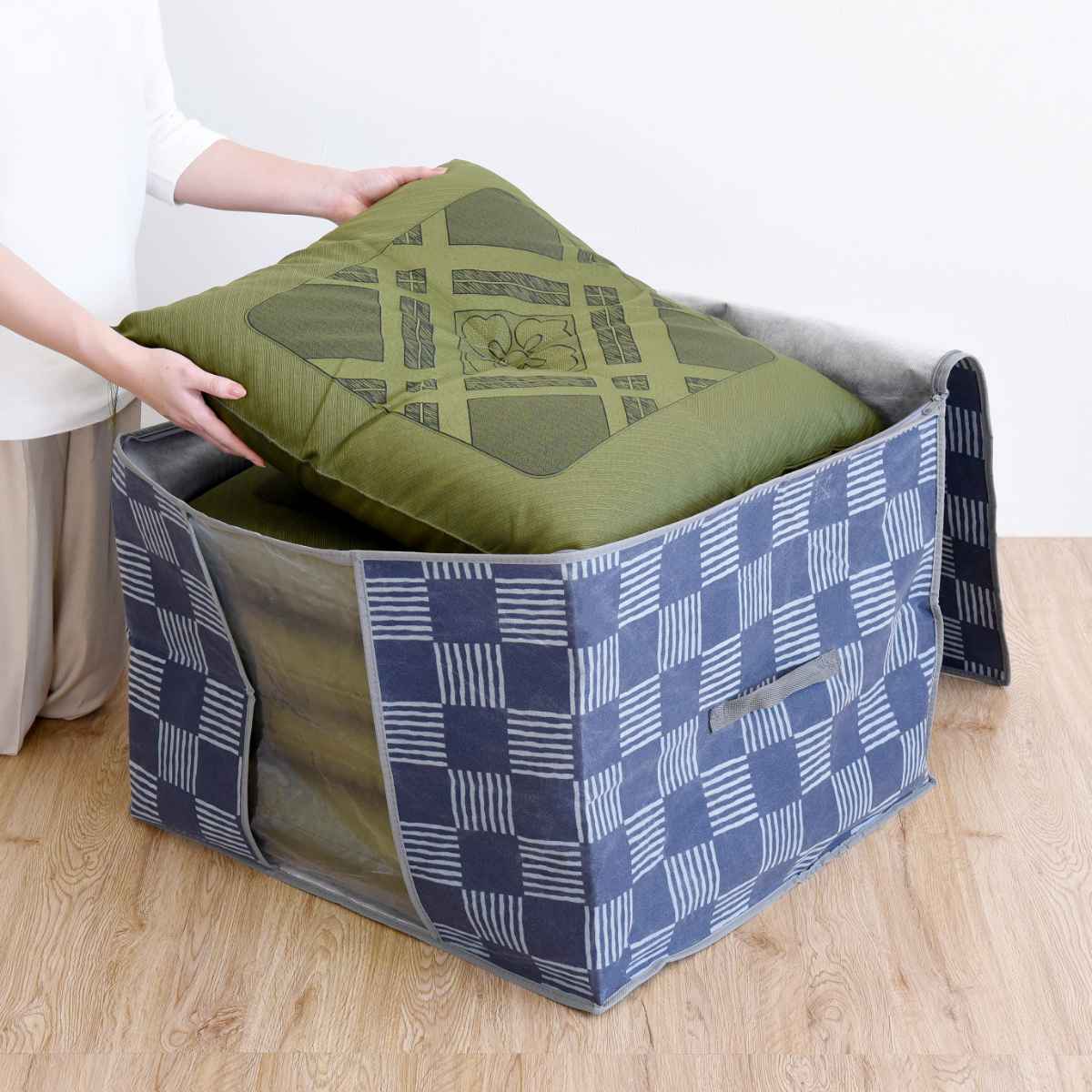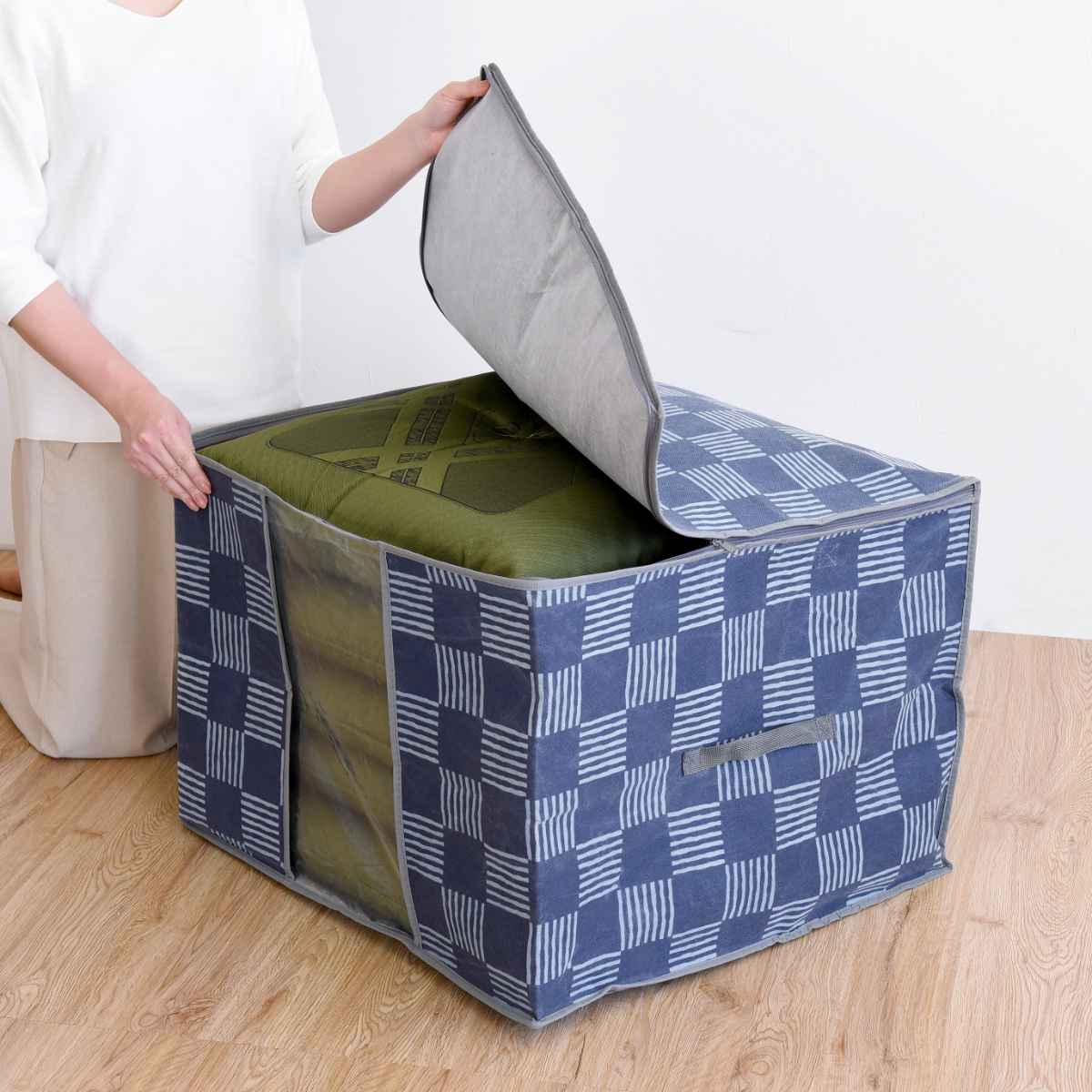 竹炭消臭+防ダニ加工で臭いとダニから守る座布団用収納ケース