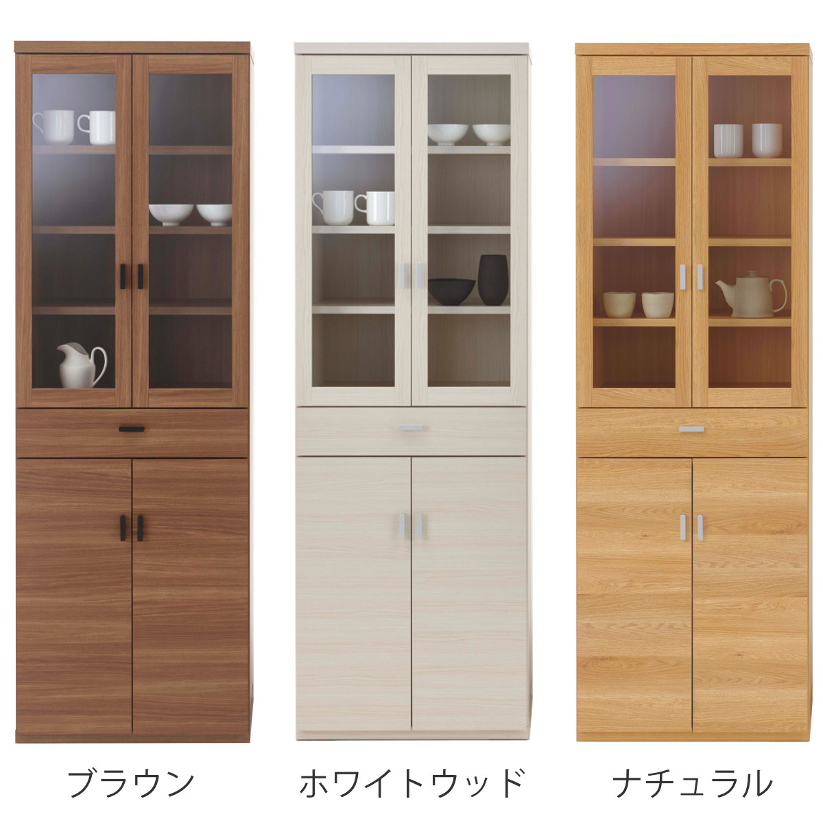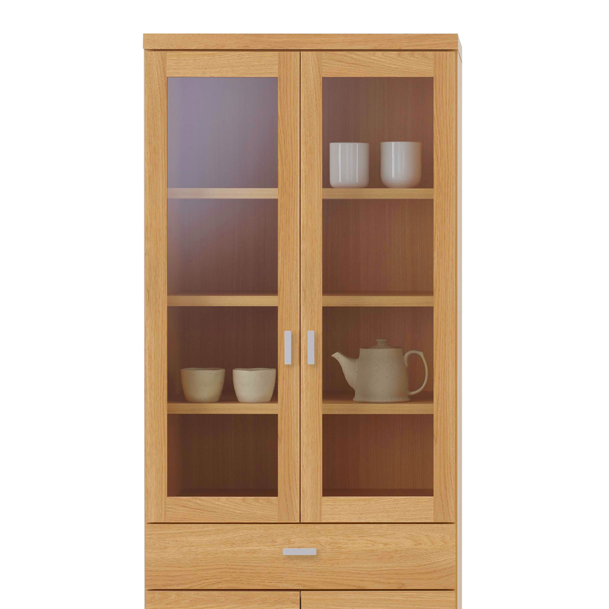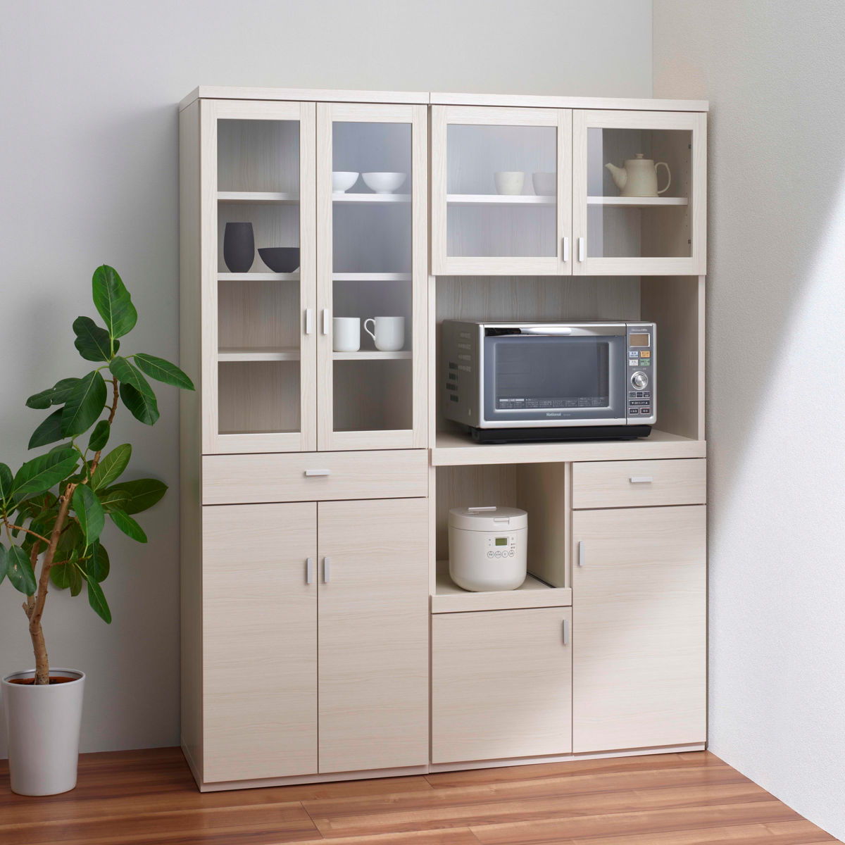 ●よく使う食器やお気に入りの食器、小物などの収納におすすめのガラス扉収納付きです。