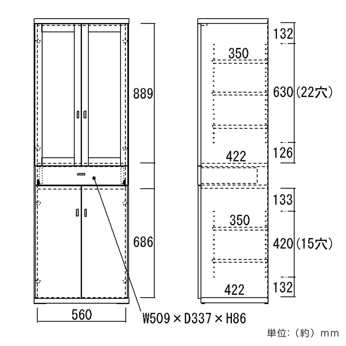 【可動棚2枚:3cmピッチ15段階】