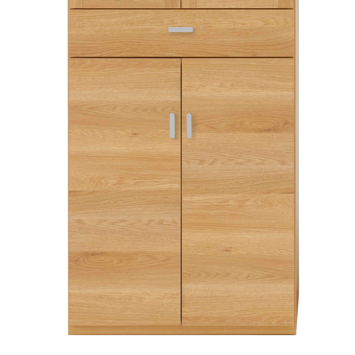 下段には食器や食品ストックなどの収納に便利な開き扉収納付きです。可動棚付きなので収納物に合わせてお好みで高さを調整していただけます。