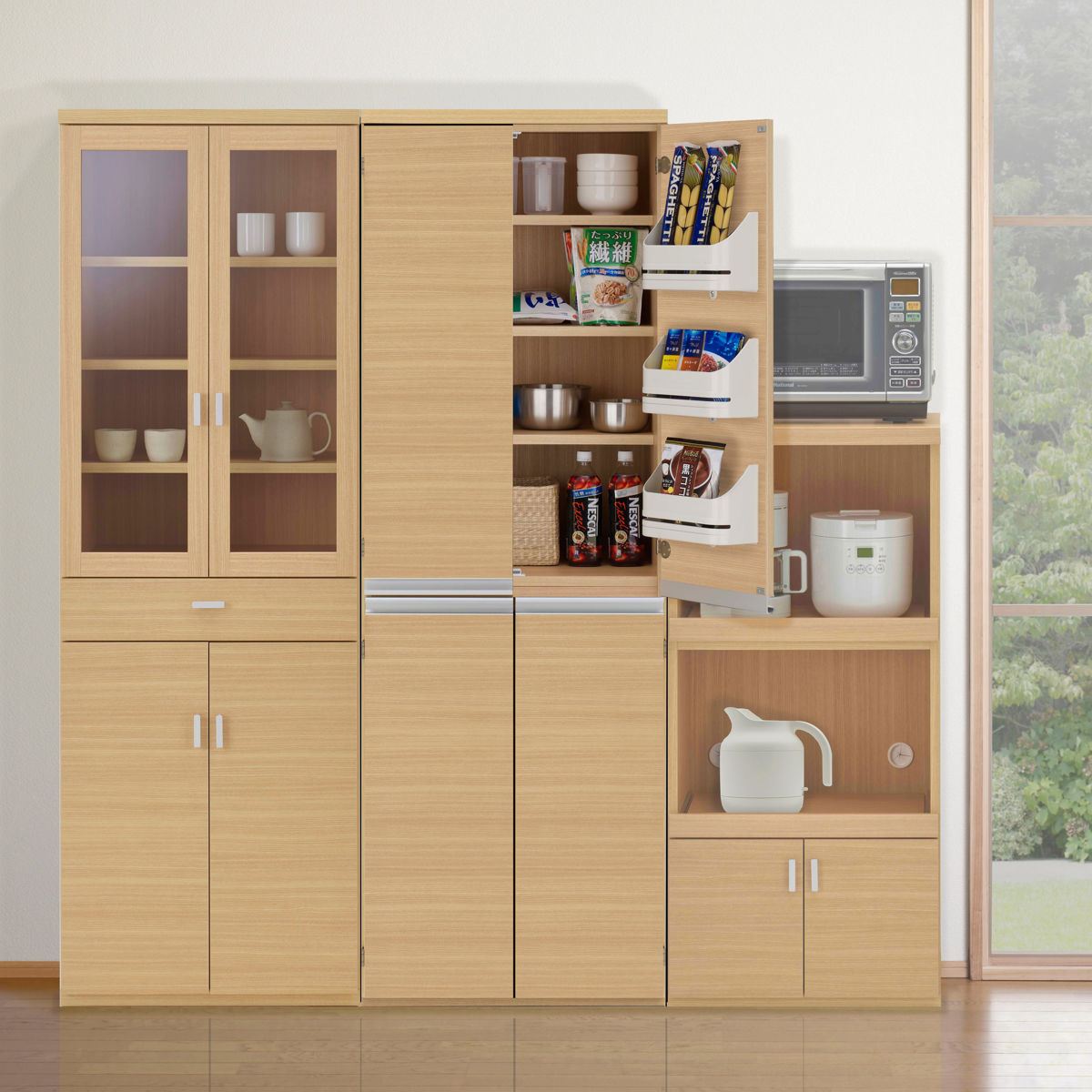 同シリーズのキッチンファニチャーで揃えると、お部屋に統一感が出てさらに収納力もアップします。ライフスタイルに合わせて単品または組み合わせてお使いいただけます。