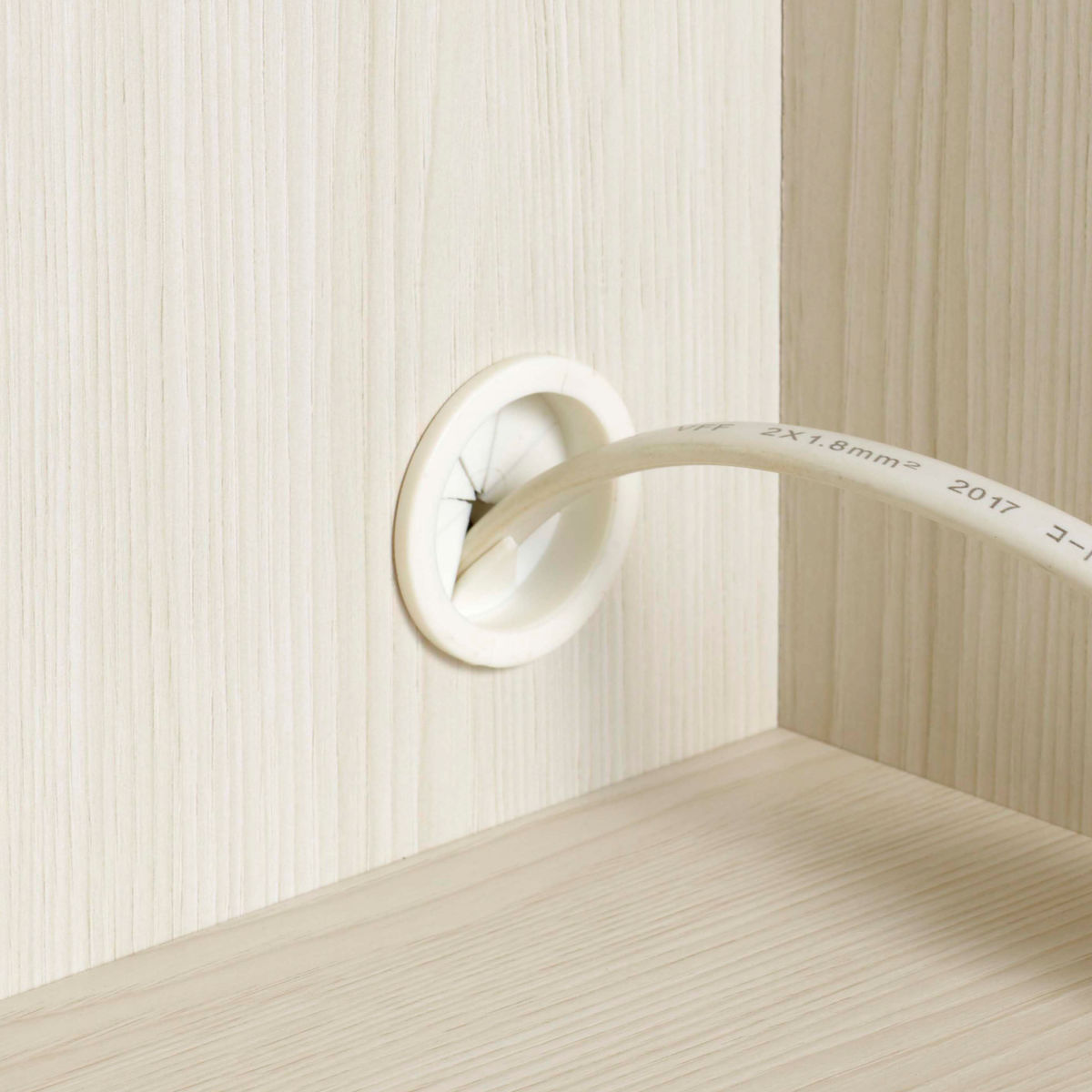 スライド棚収納部には、壁面コンセントを利用しやすい位置にコード穴が4か所に付いています。