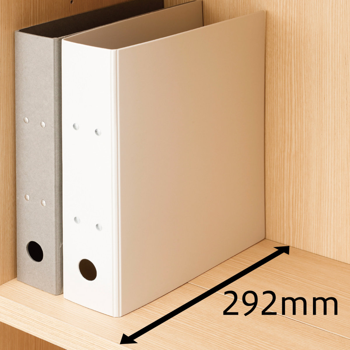 前後の棚板を同位置にセットすれば奥行きが約29.2cmになるので、A4サイズの雑誌や専門誌、ファイルも収納することができます。