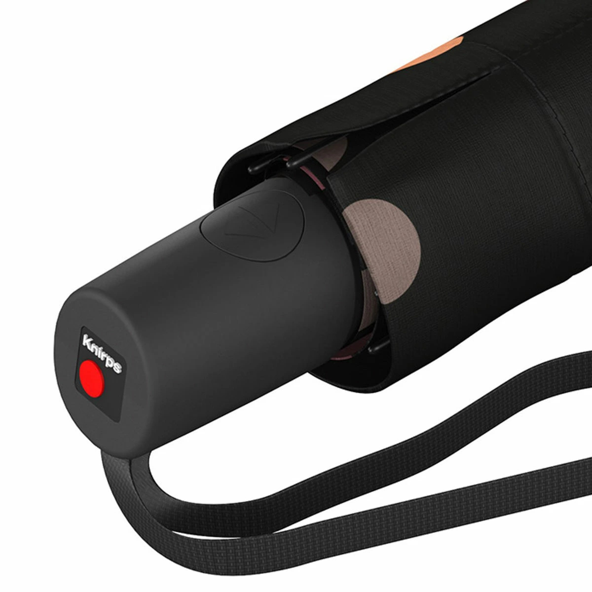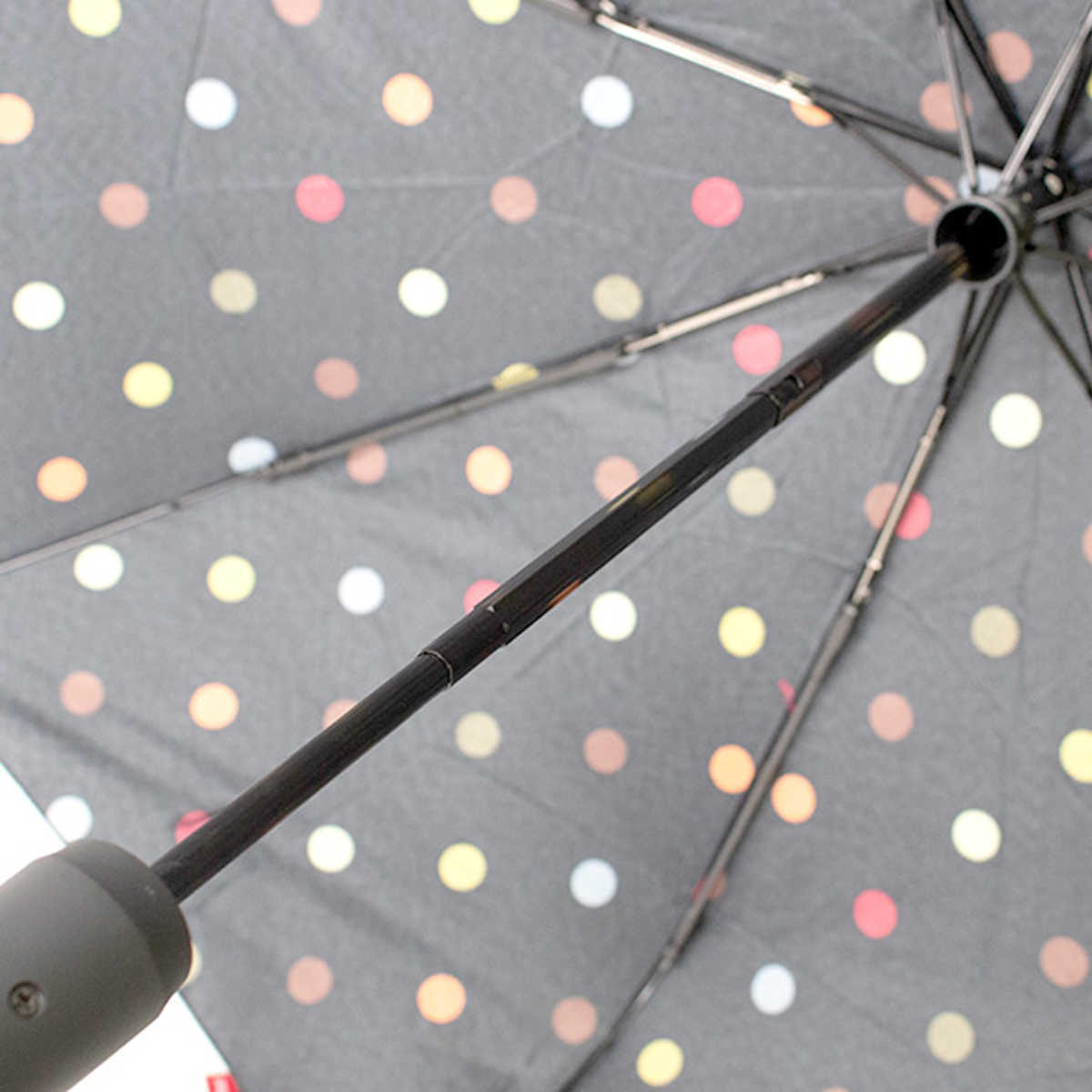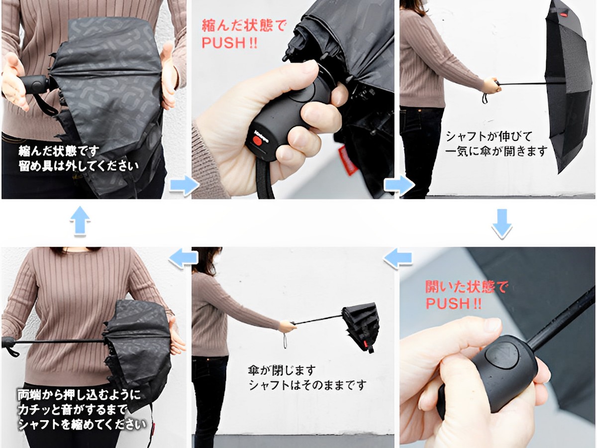 大きなプッシュボタンが付いており、片手で簡単に自動開閉できます。急な雨でもサッと使えて便利です。