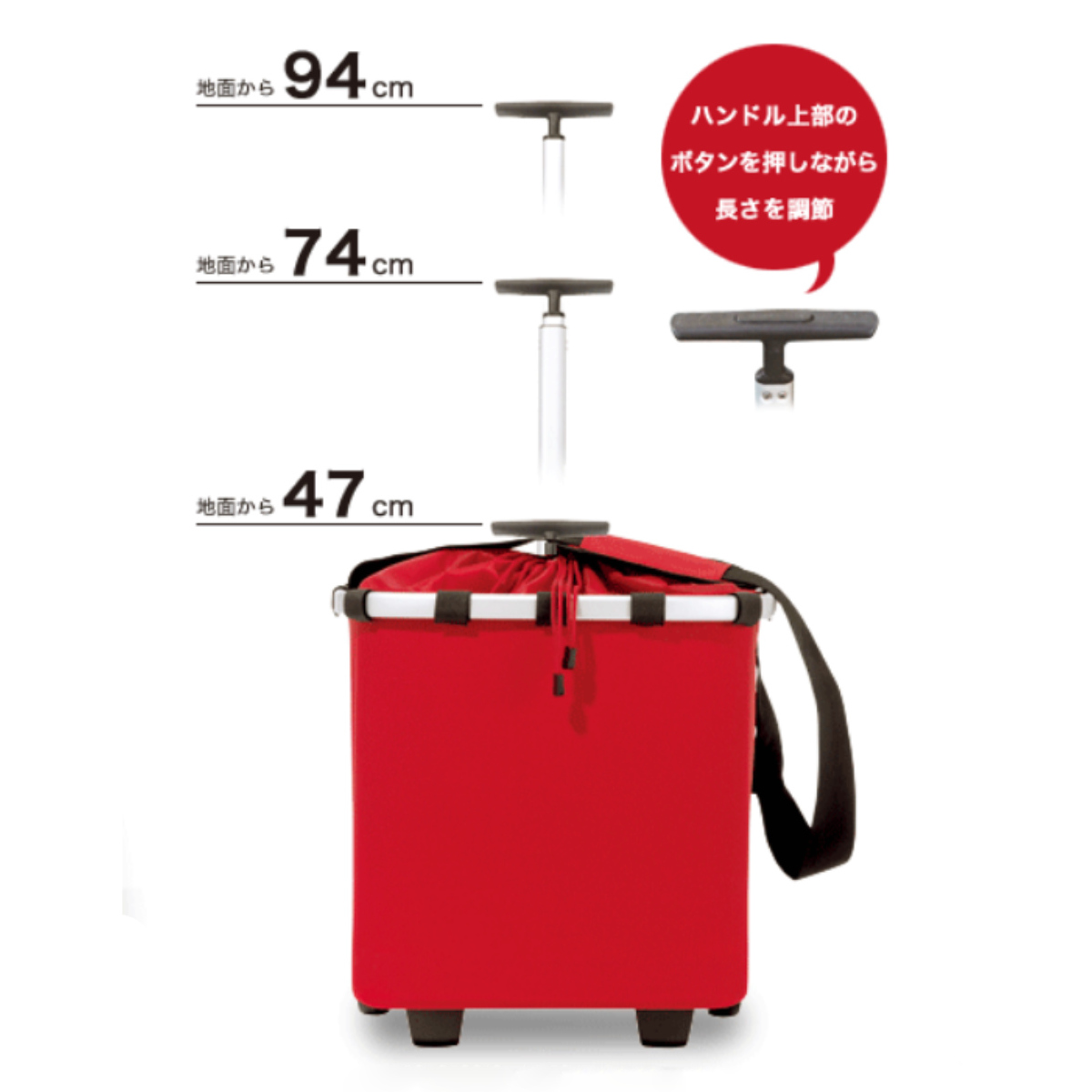 | サイズ | 外寸:約 幅42×奥行32×高さ47.5(cm) 内寸:約 幅38.5×奥行27×高さ37(cm) ハンドル使用時:約 幅43×奥行45×高さ94(cm) 車輪:約 直径12(cm) |