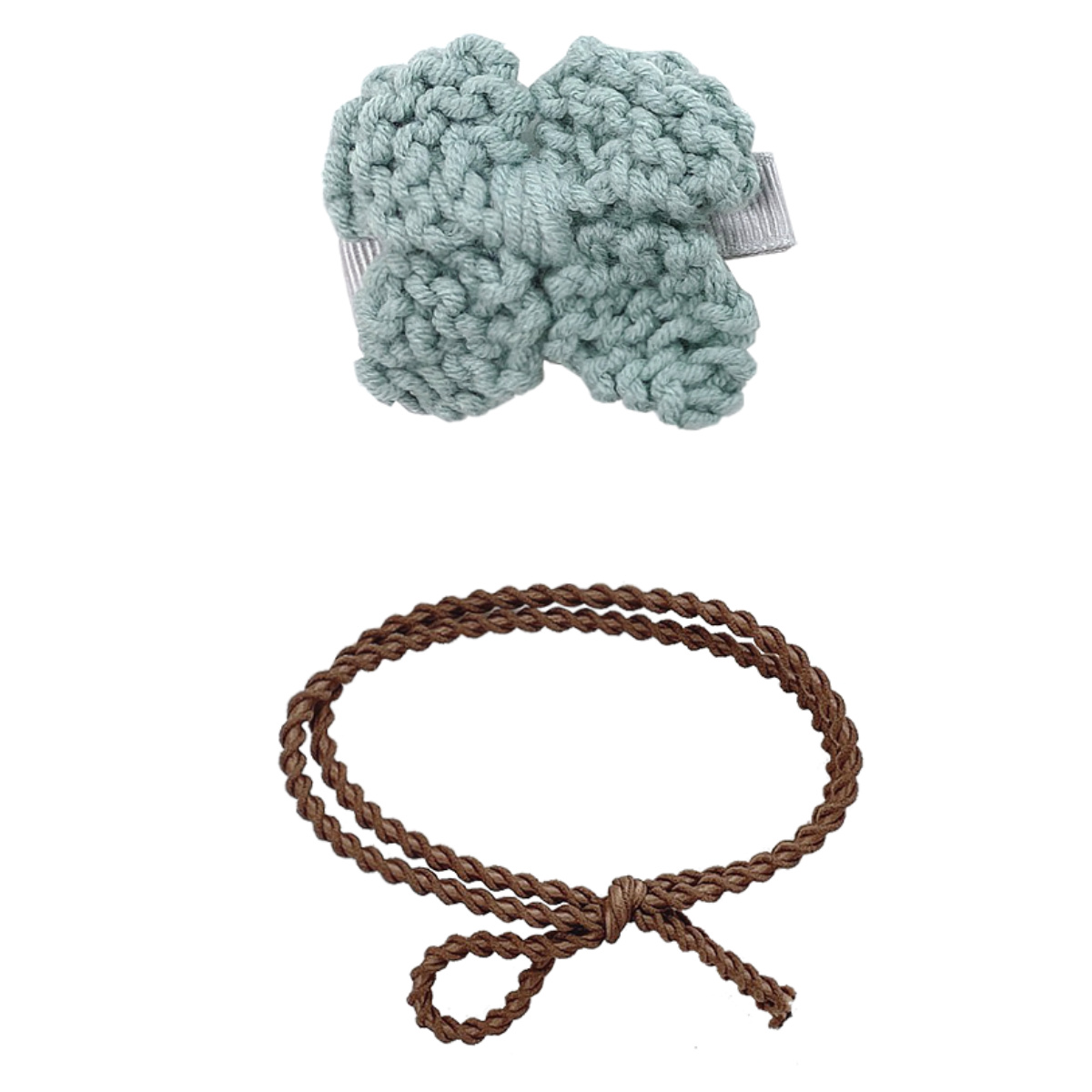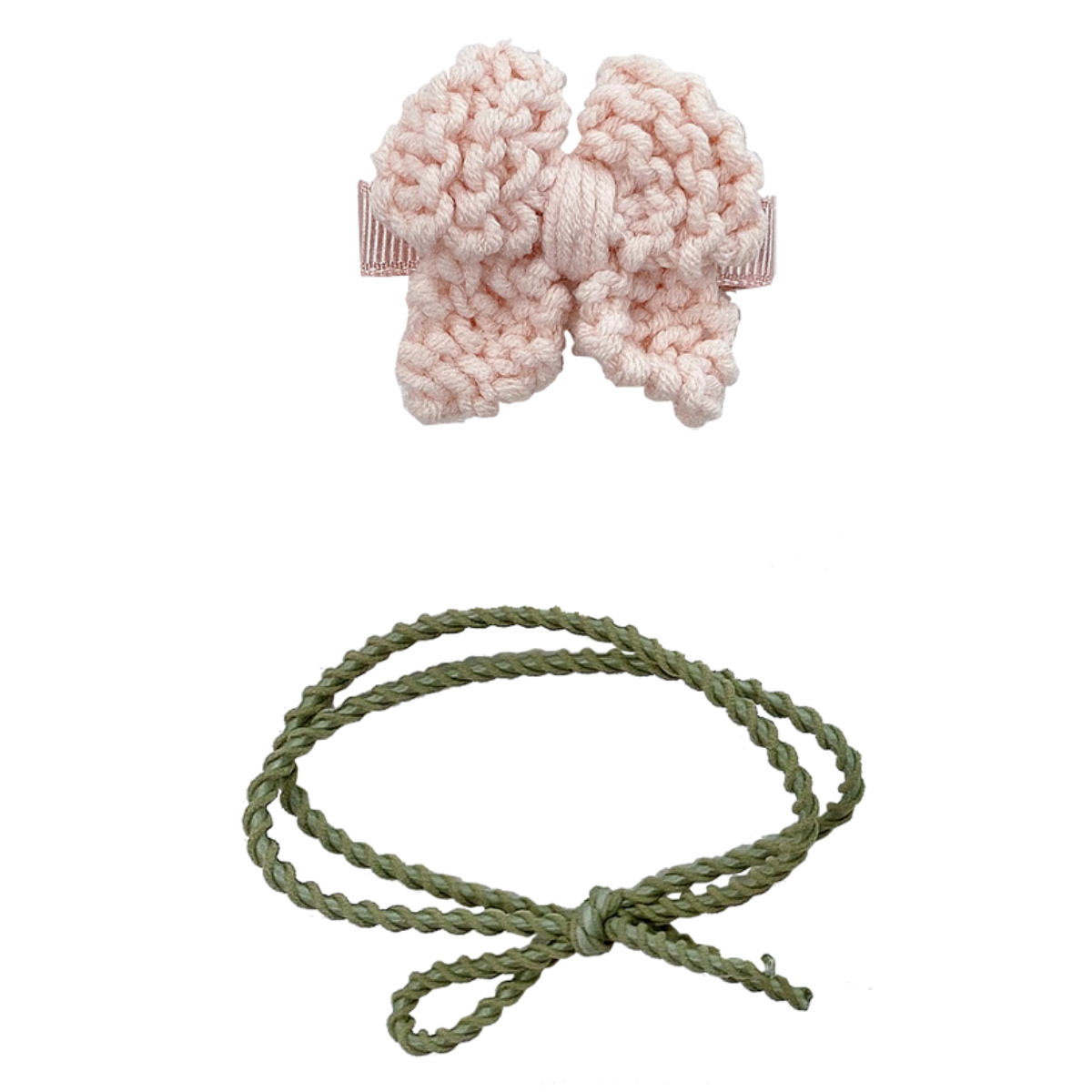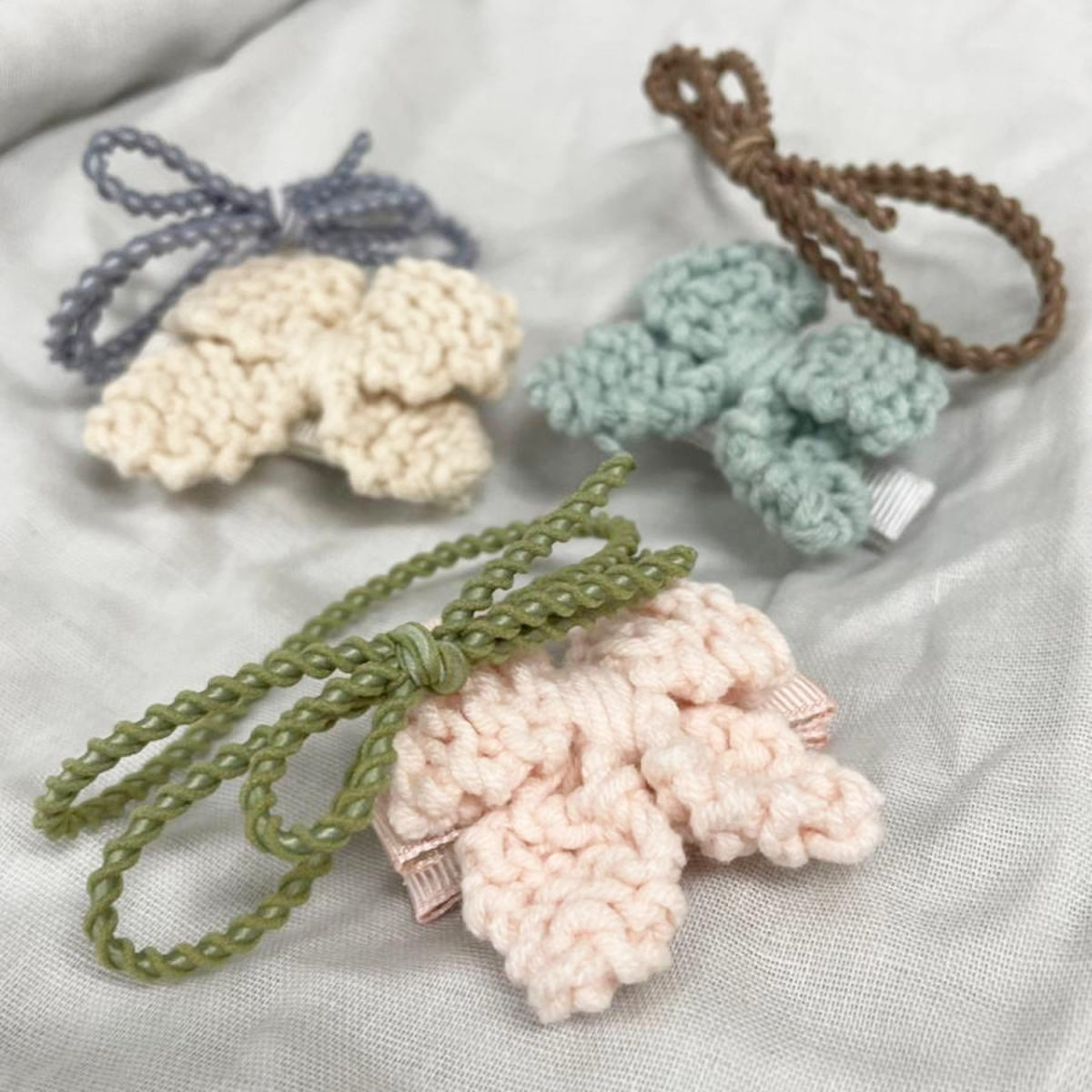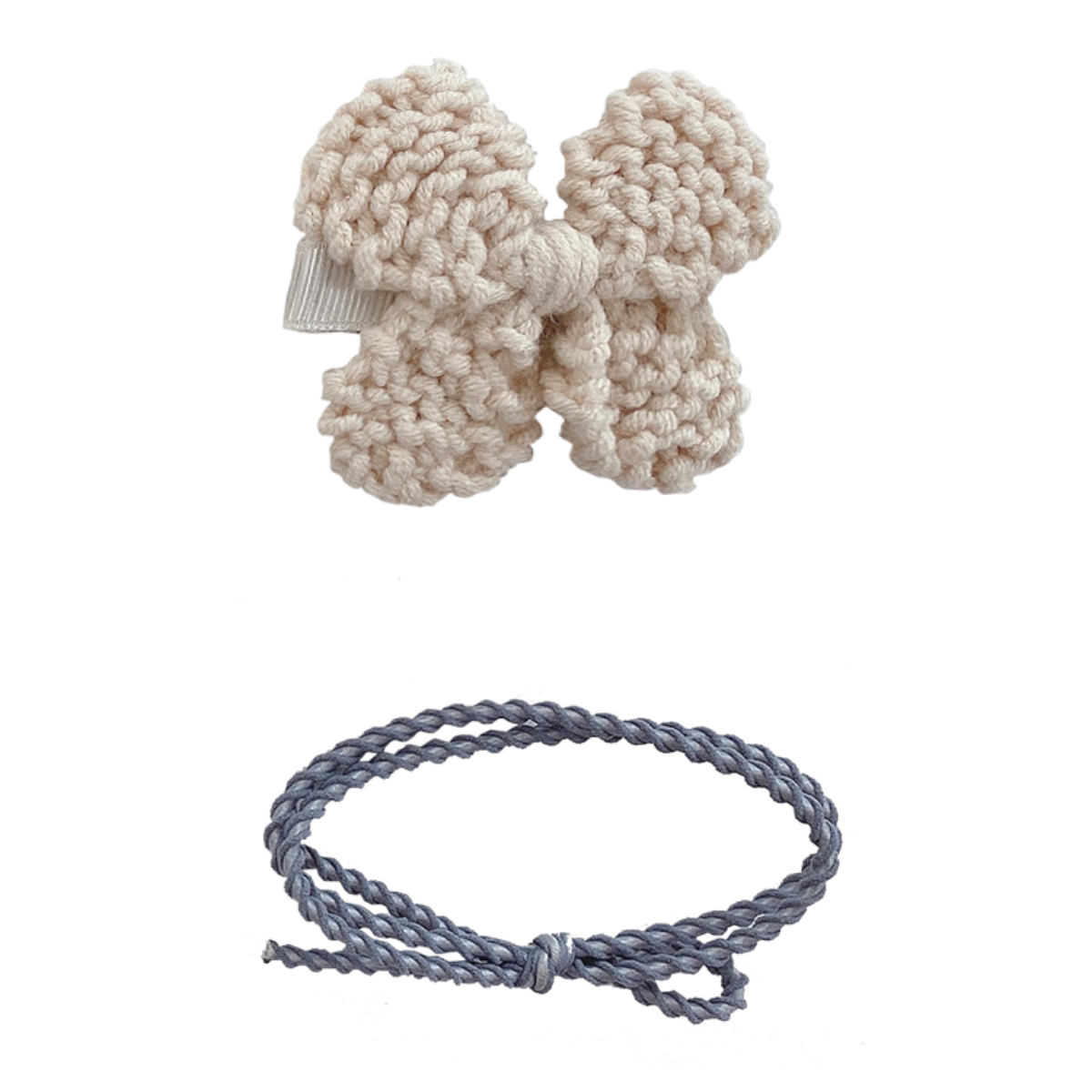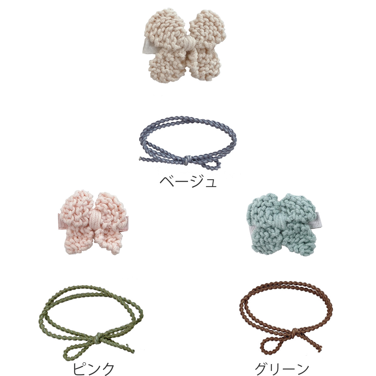 ニットリボンのクリップとヘアゴムのセット
