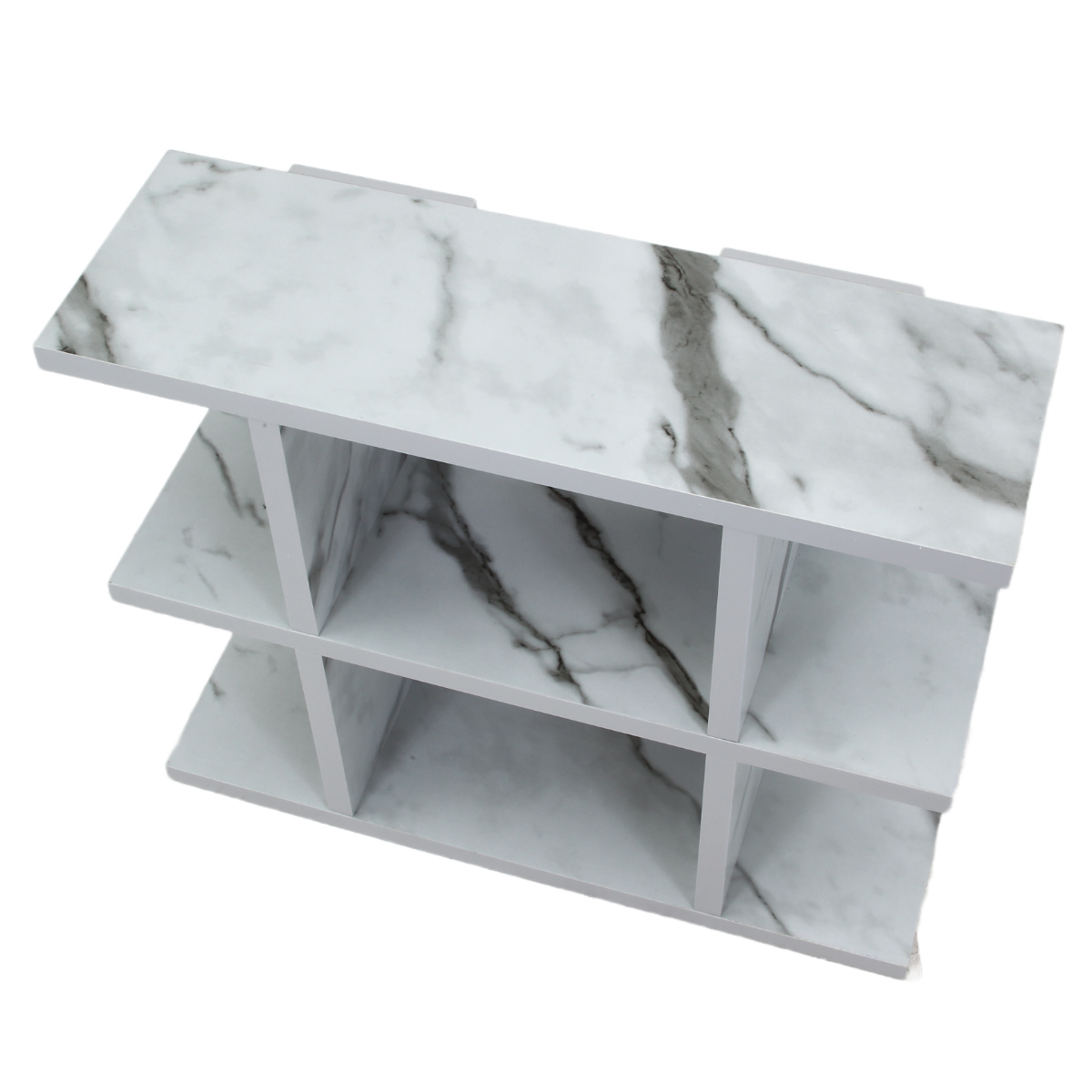 大理石のような模様が全面にプリントされた3段のオープンラックです。どんなお部屋にも使いやすいシンプルなデザインで、置くだけで高級感のある上品な空間が作れます。