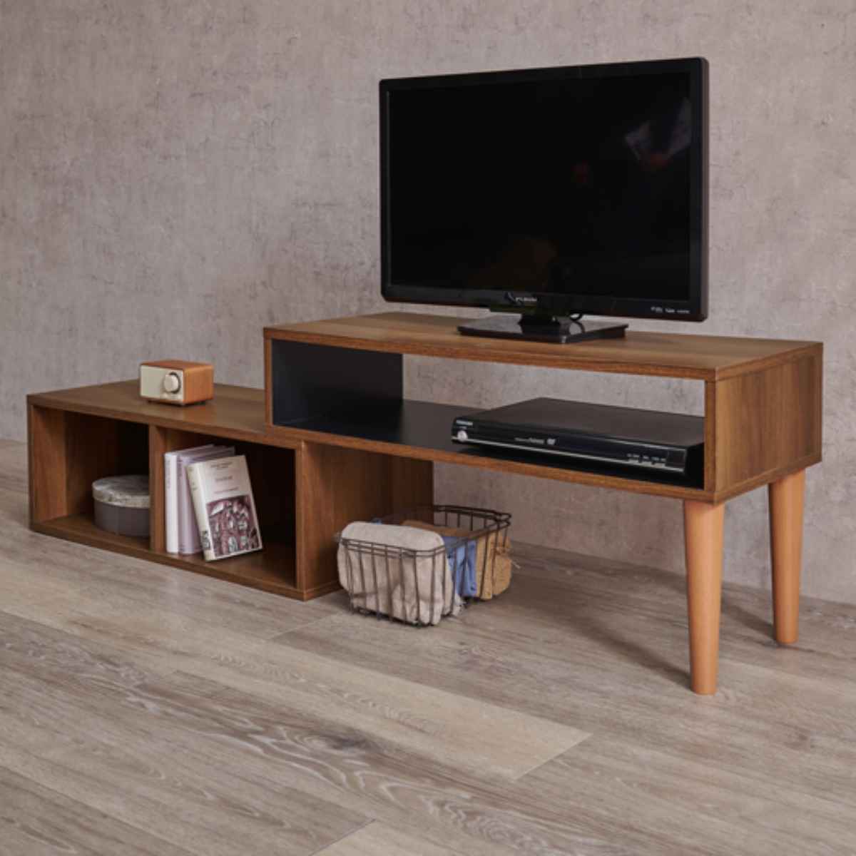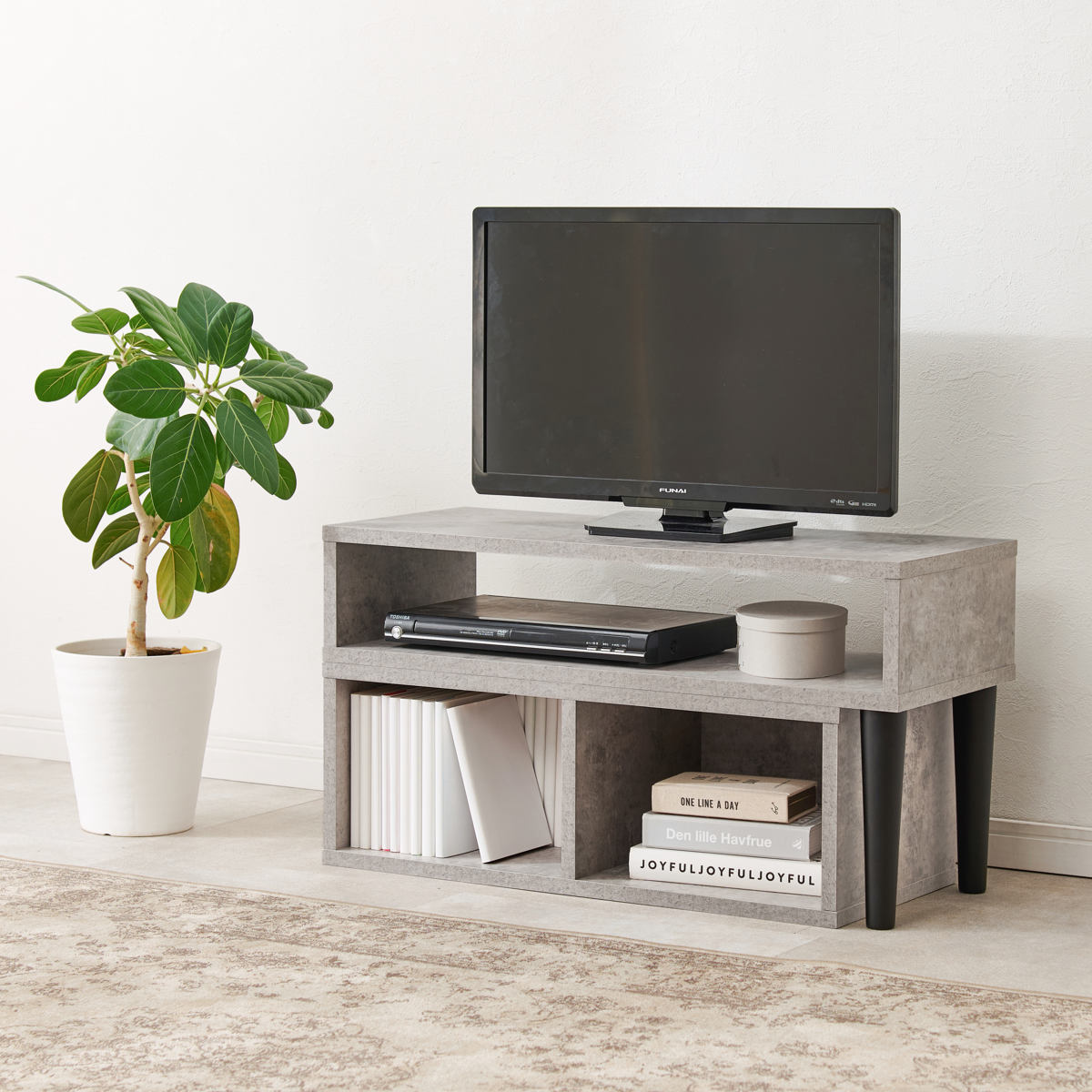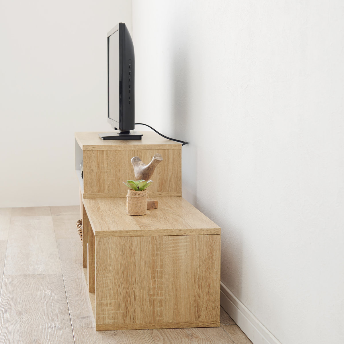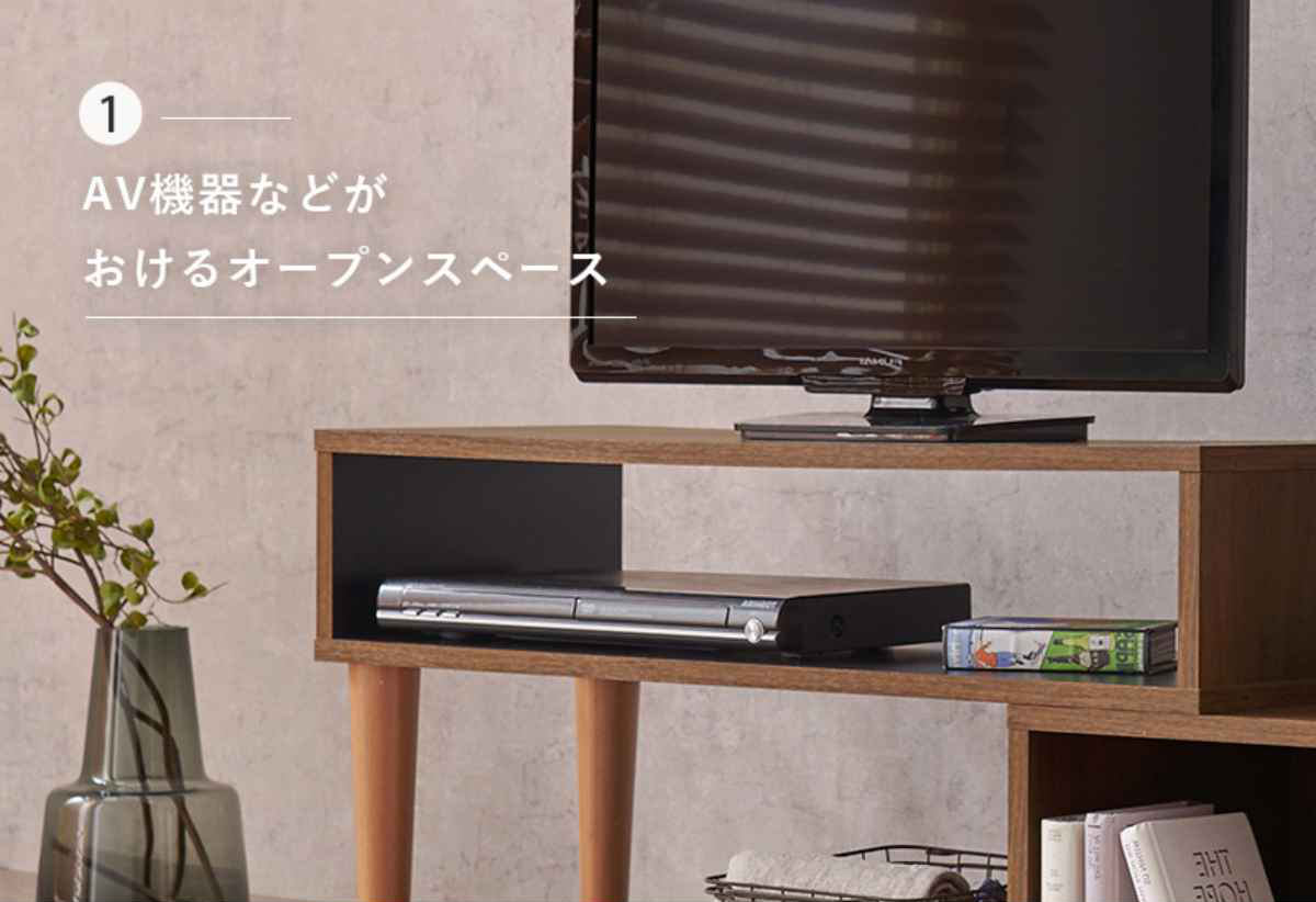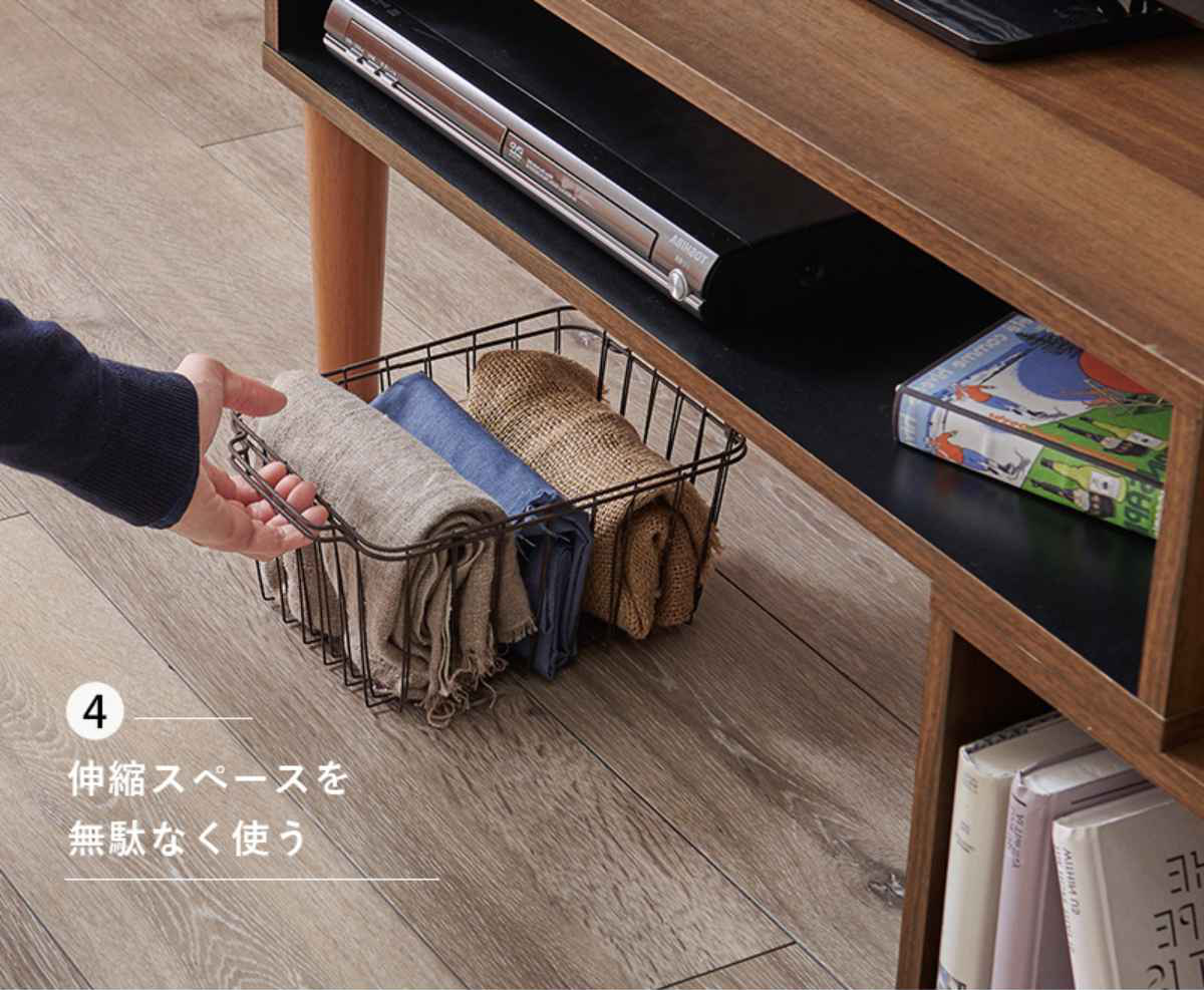 テレビ台を伸ばした時に使えるオープンスペースです。ボックス等を活用するとスッキリ収納できます。