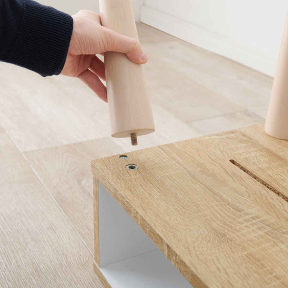 組み立てはダボとネジを使用しており、脚は手で簡単に取り付けることができます。その他の組み立てにはプラスドライバーが必要です。取り付ける際、ゴムハンマーと電動ドライバーがあればよりスムーズに組み立てることができます。