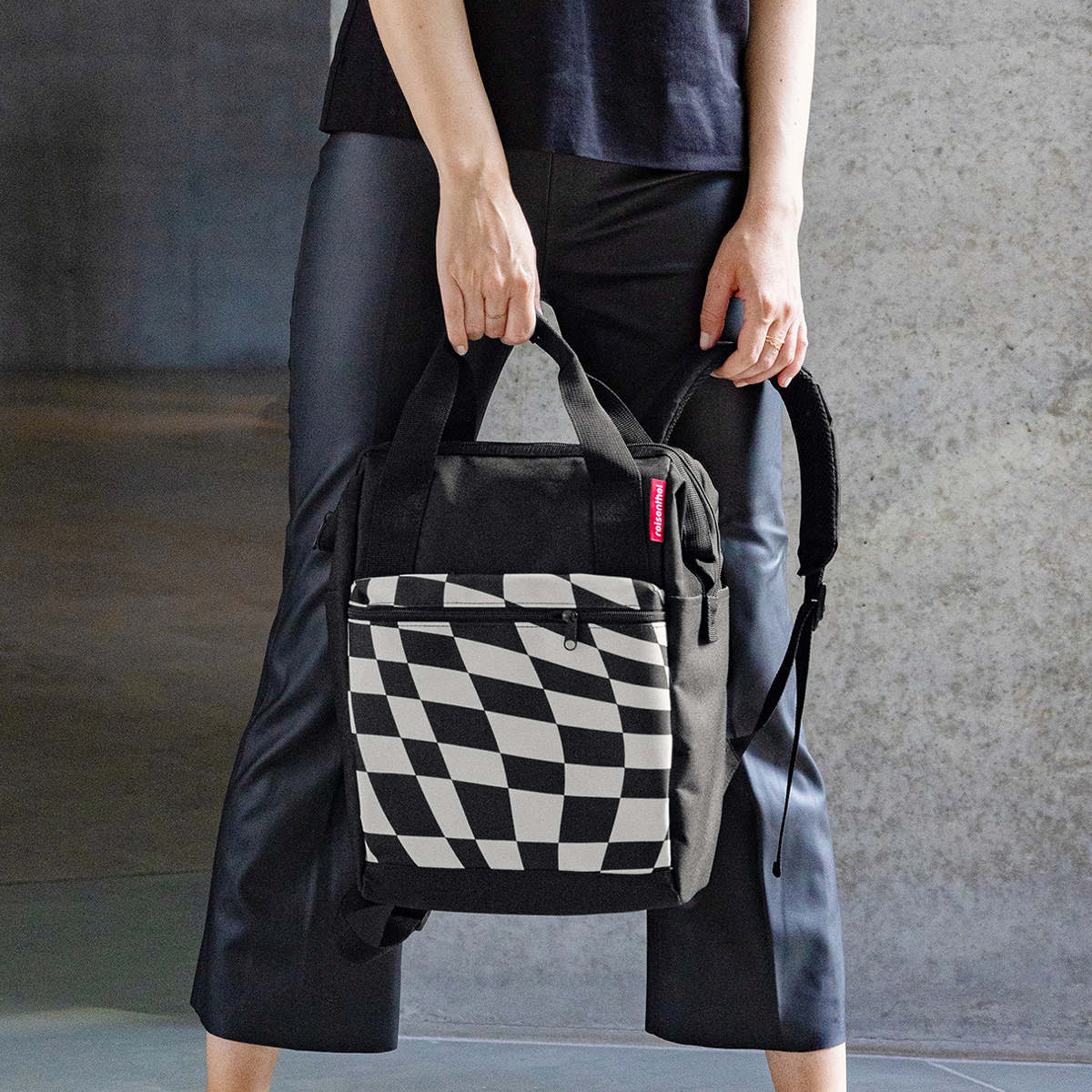 ショルダーストラップとは別にキャリーハンドルも付いているため、背負うだけでなく、片手でバッグとして持ち運びできます。