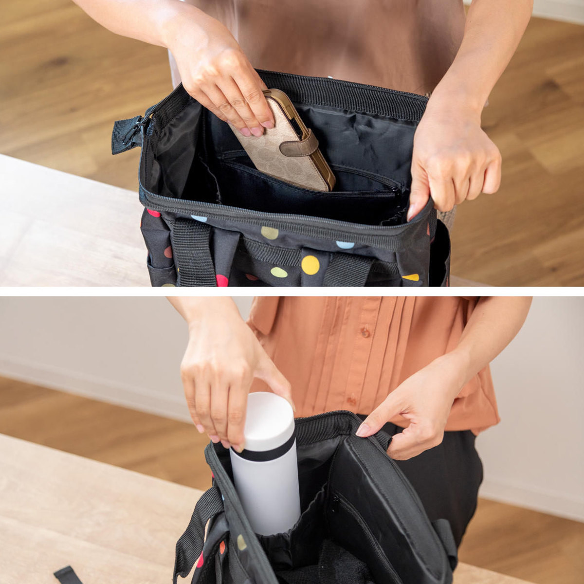 ●厚手の丈夫なポリエステル生地で作られており、通勤・通学やマザーズバッグにピッタリです。