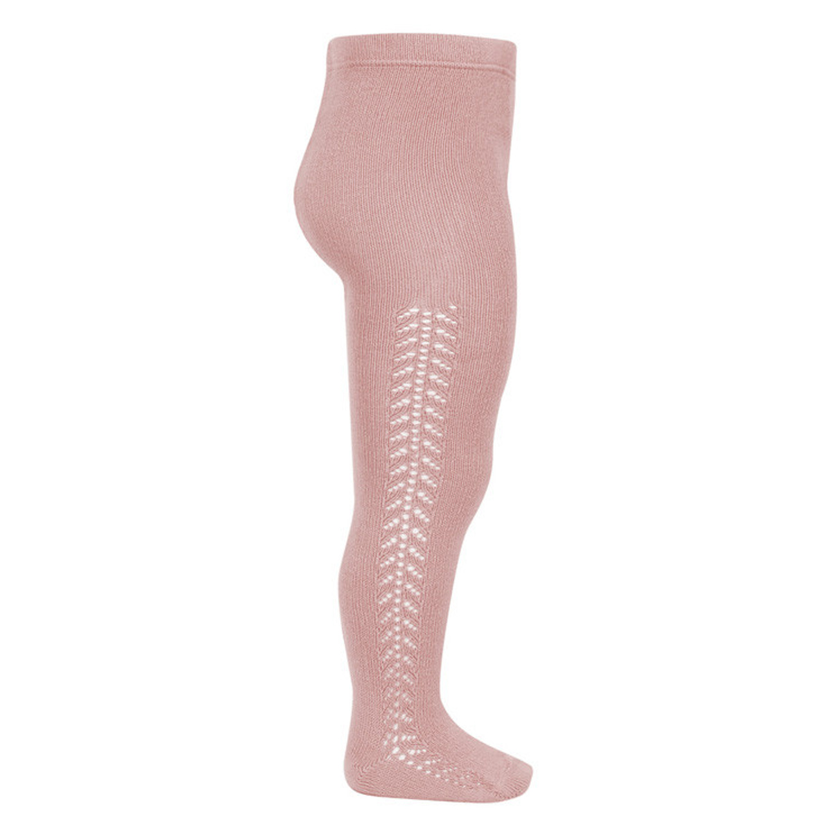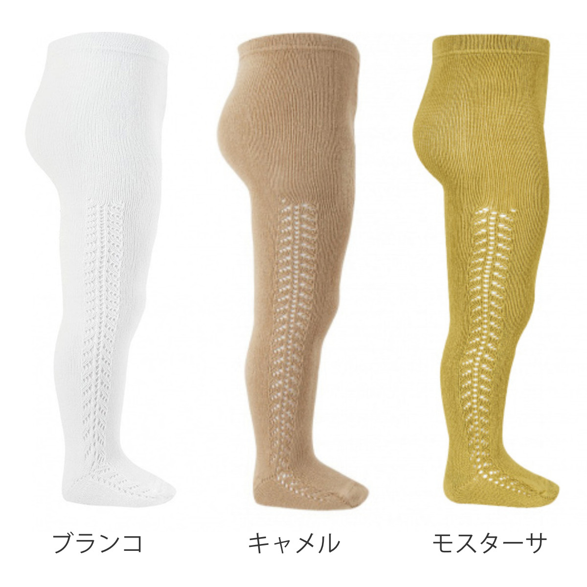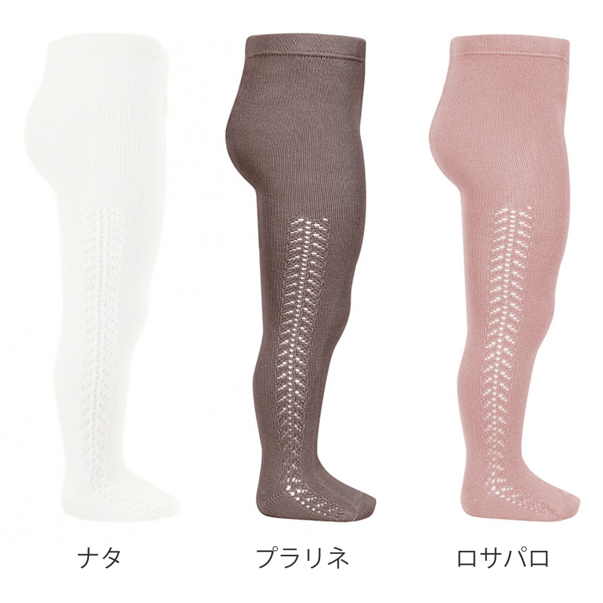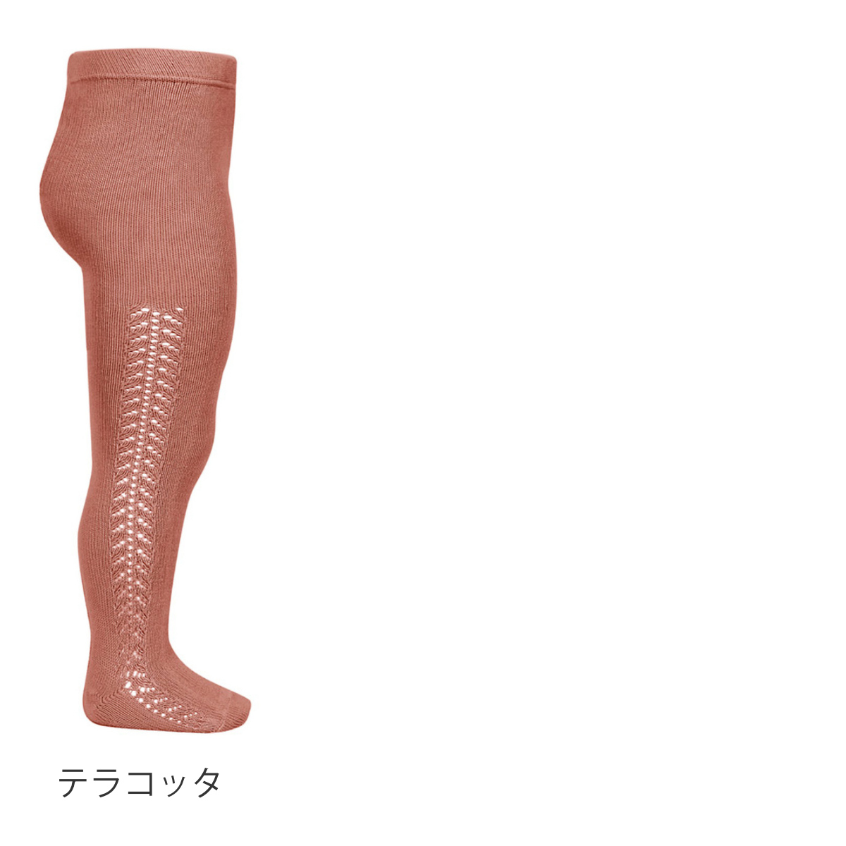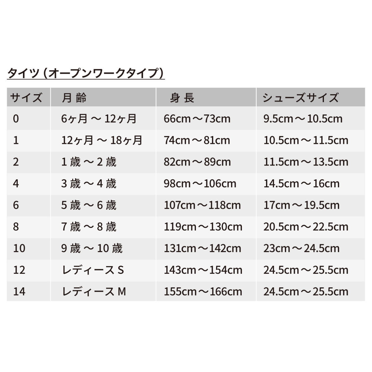 両サイドに施された透かし編みがポイントのオープンワークタイツです。様々なお洋服と合わせやすいシンプルなデザインなので、普段着からお出かけ時まで、足元を可愛く演出してくれます。