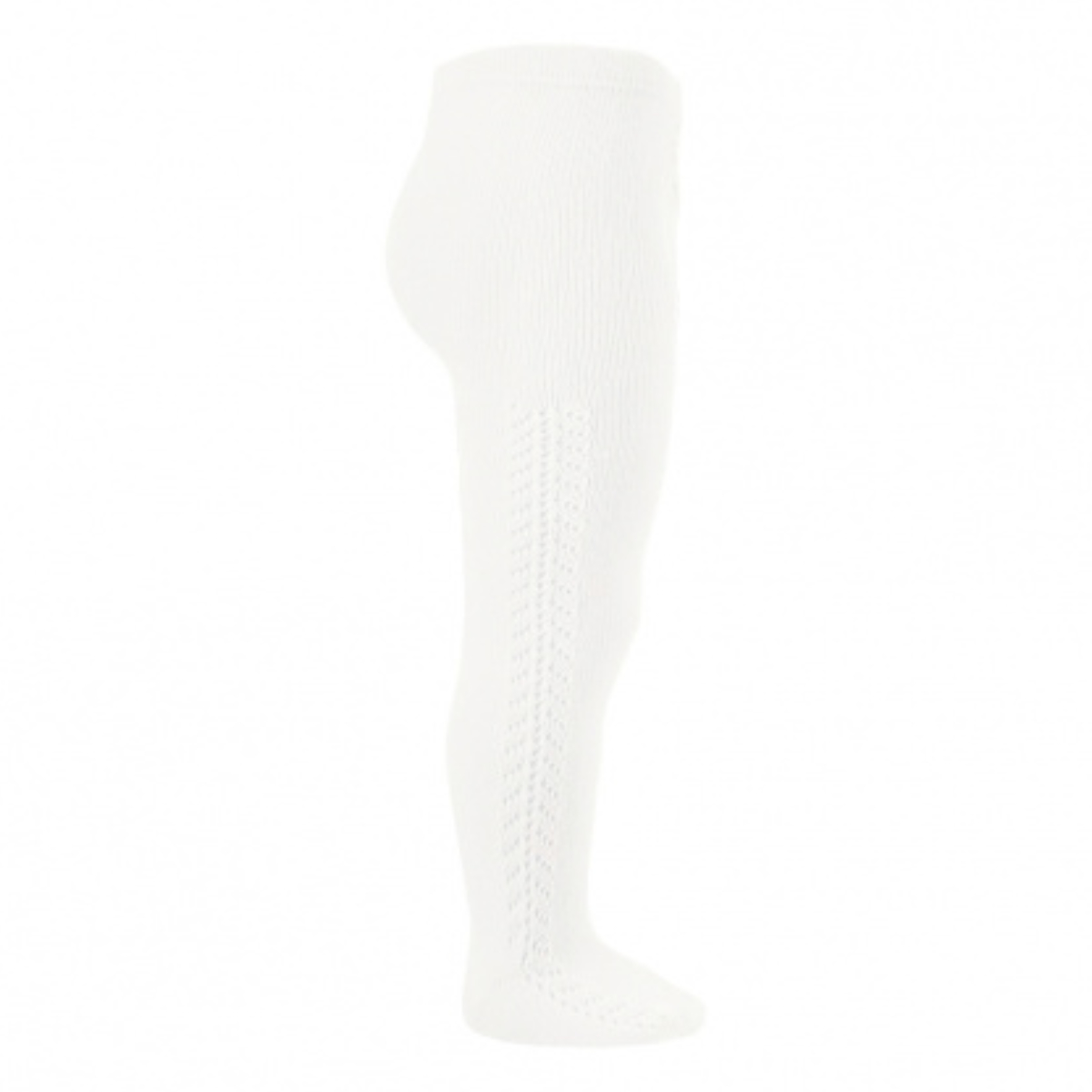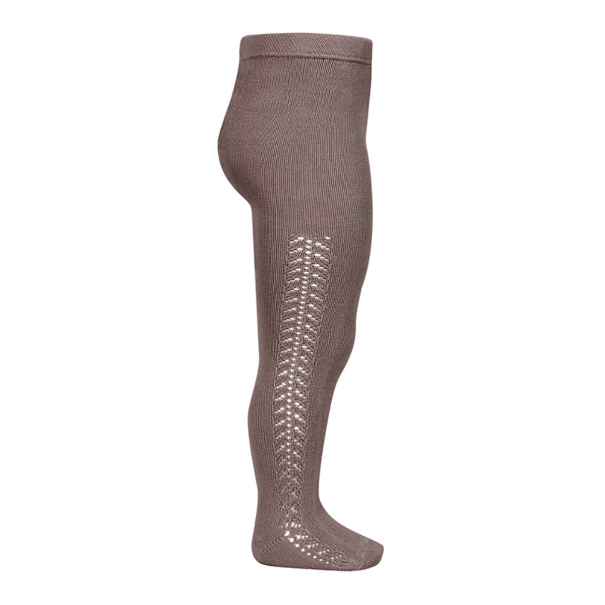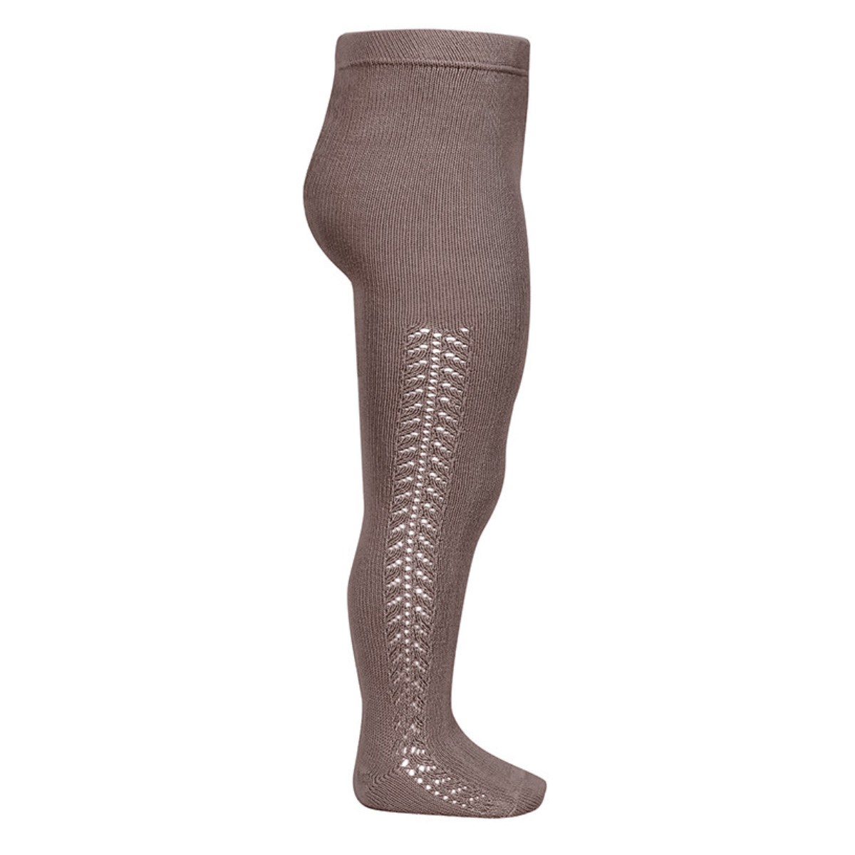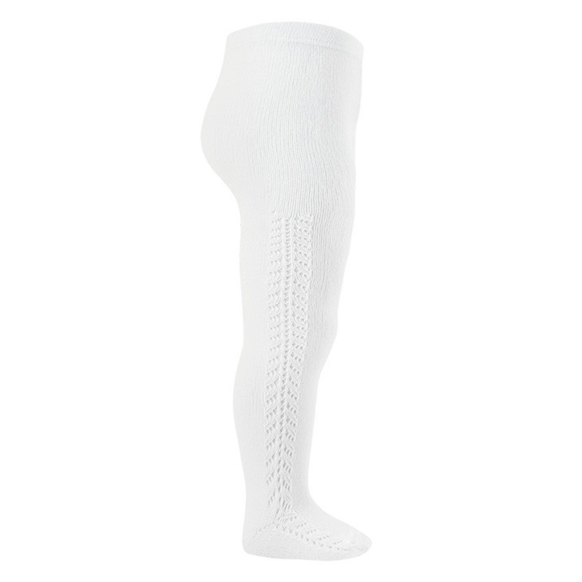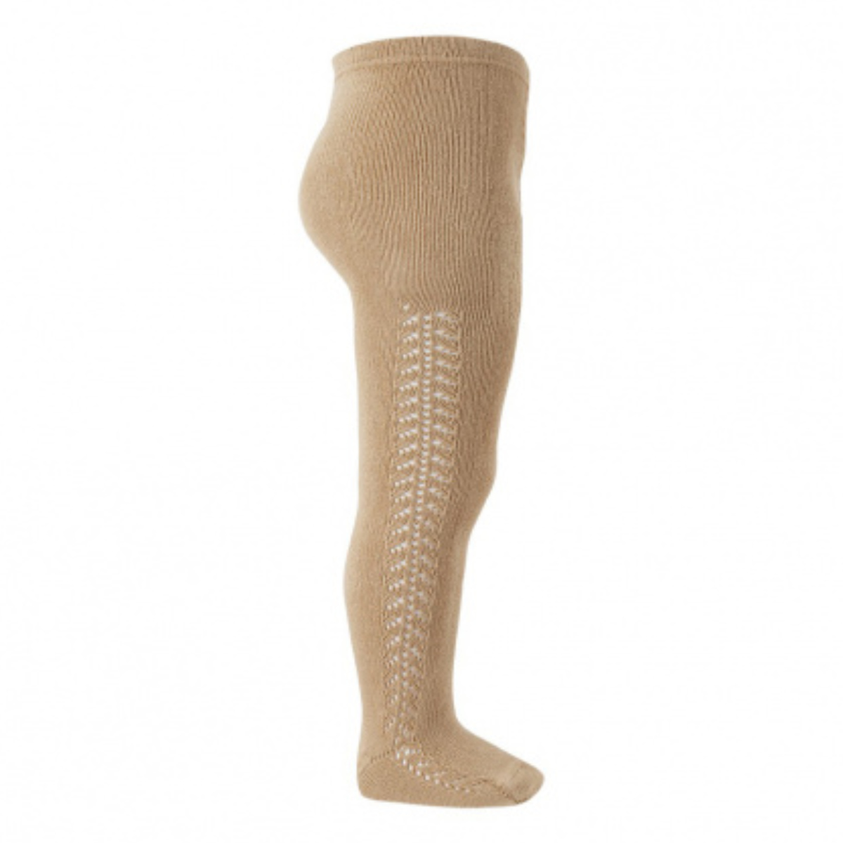 両サイドに施された透かし編みがポイントのオープンワークタイツです。様々なお洋服と合わせやすいシンプルなデザインなので、普段着からお出かけ時まで、足元を可愛く演出してくれます。