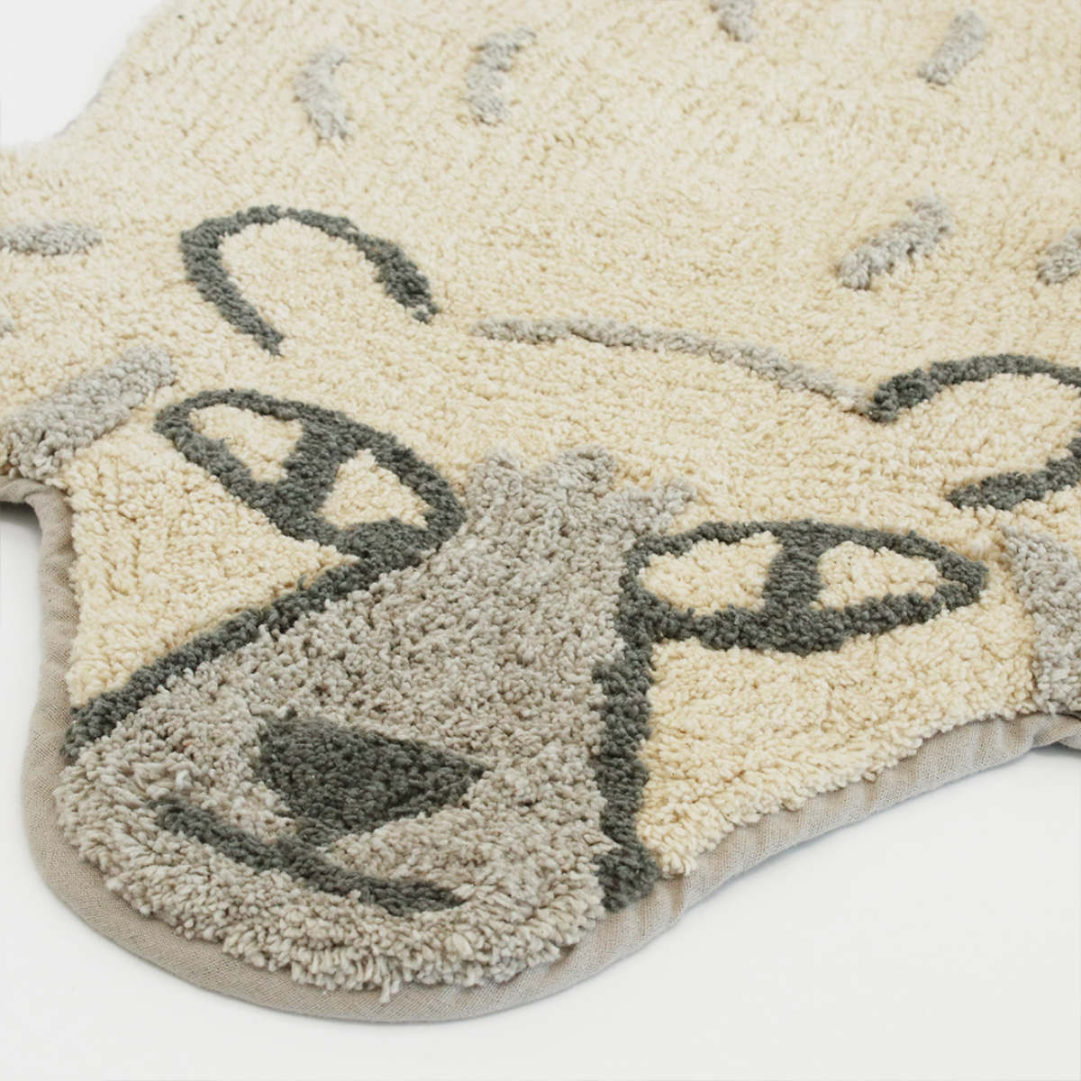 うつぶせになった、はく製のようなデザインのマットです。迫力あるフォルムなのに、何とも言えない表情に癒されます。大きめのサイズなので、玄関やお部屋の真ん中にドンと敷くとインパクトがあります。