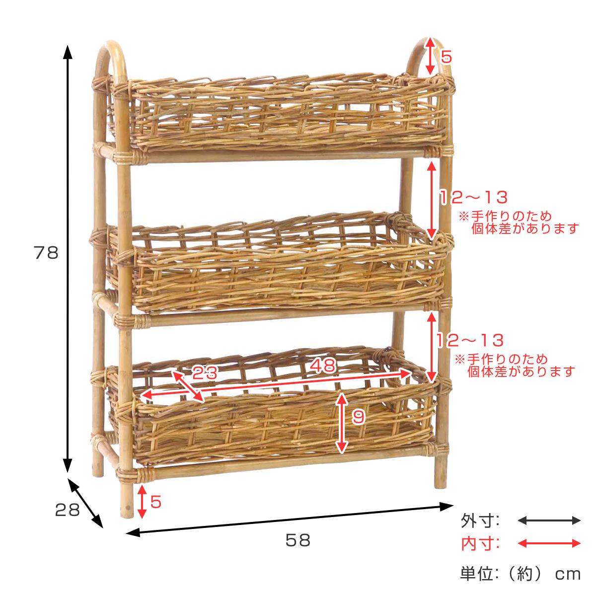 - 約幅58×奥行28×高さ78cm
