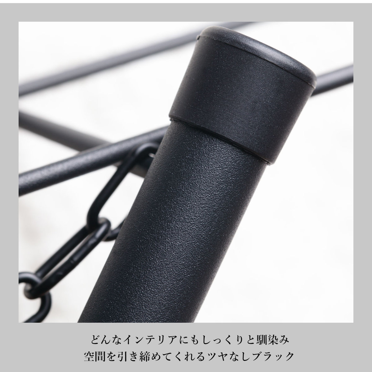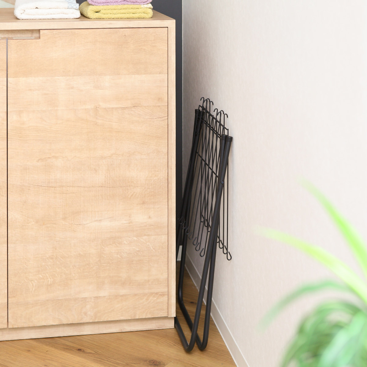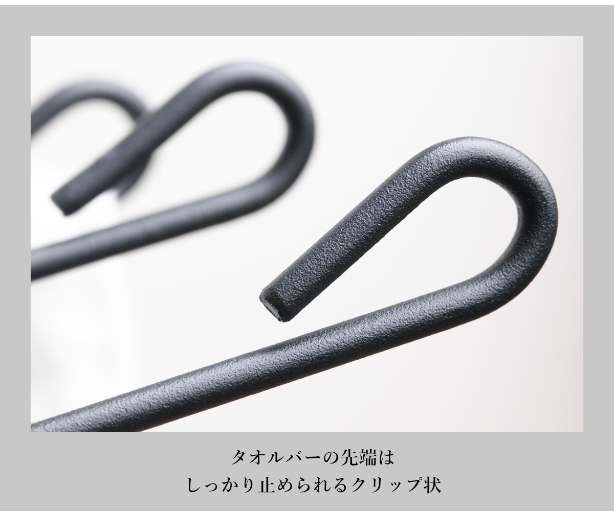 生活感が出やすいタオルスタンドも、落ち着いたブラックカラーなら、空間を引き締めてインテリアに自然と溶け込みます。指紋やホコリが目立ちにくいため使いやすく、シンプルながら洗練された印象を与える、見た目と実用性を兼ね備えた1台です。