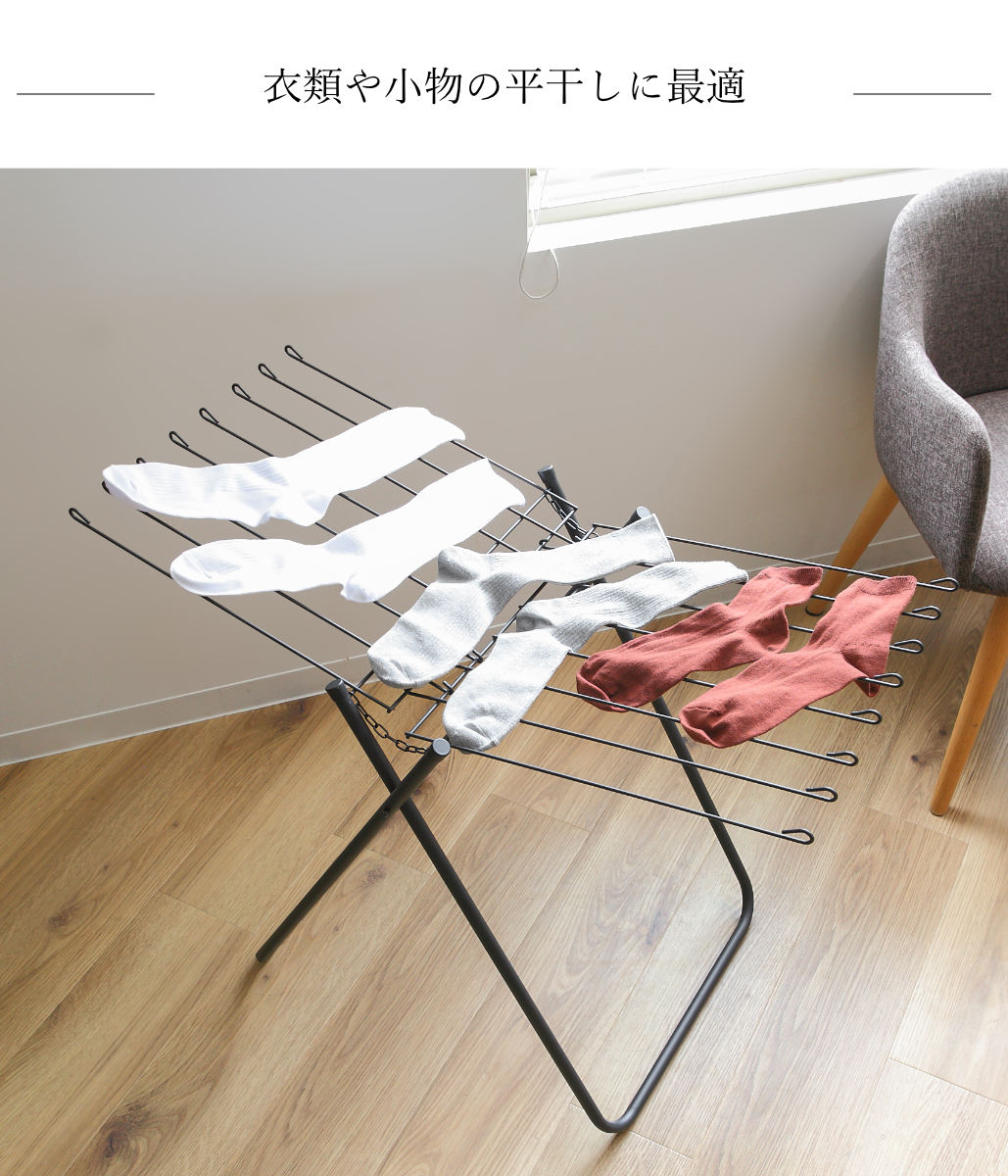 デリケートな衣類や、干しにくい枕やクッション等をハンガー部分に平干しすることもできます。ちょっとしたものを広げて干したい時にお勧めです。