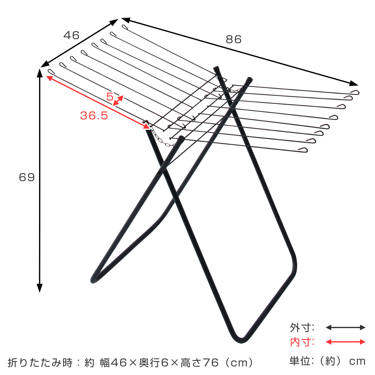 | サイズ | 約 幅86×奥行46×高さ69(cm) 折りたたみ時:約 幅46×奥行6×高さ76(cm) |