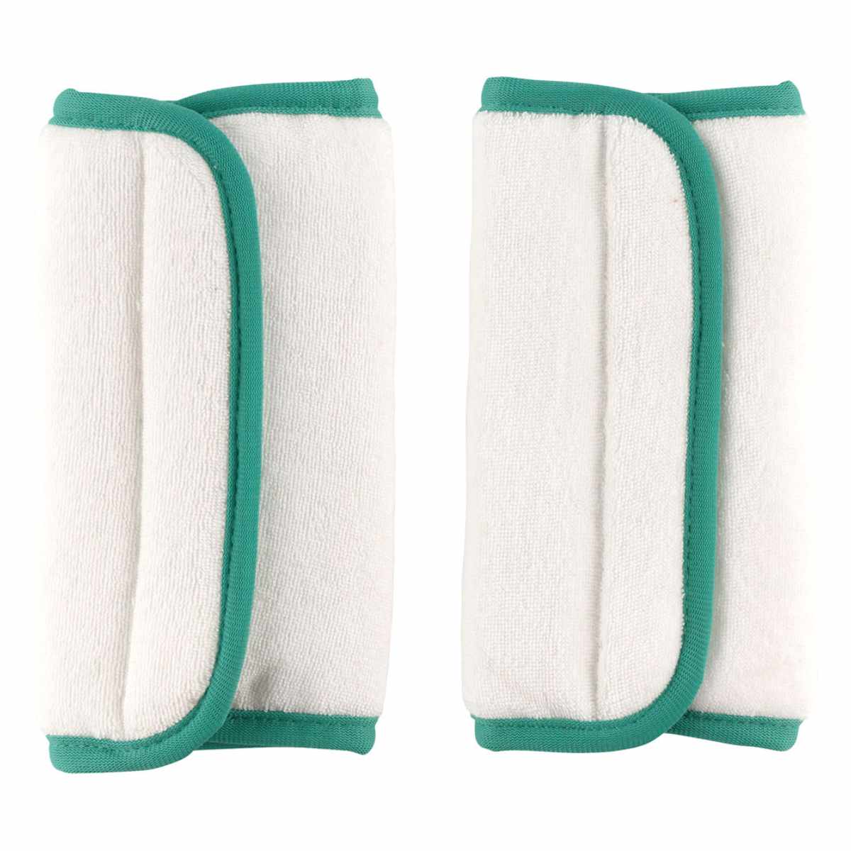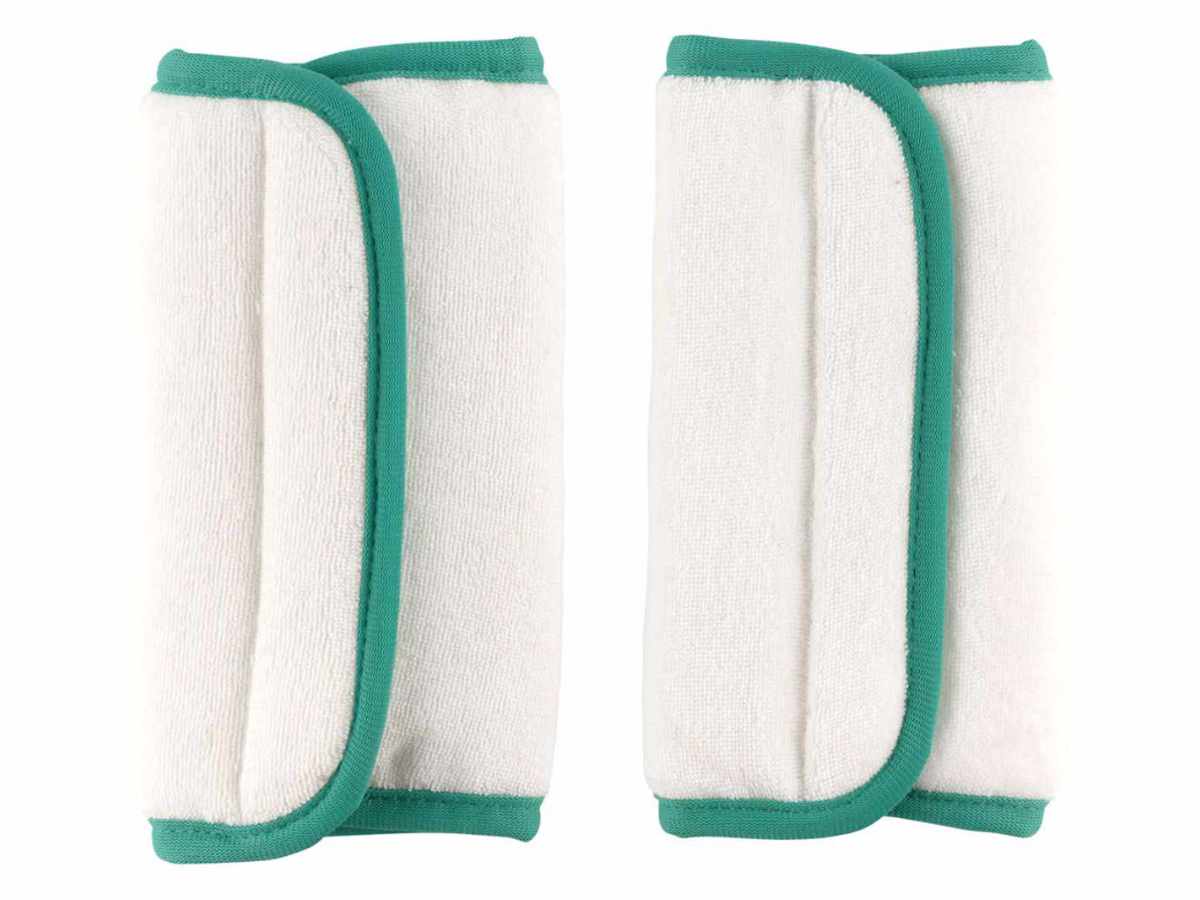 赤ちゃんの肌を守り、汚れを防ぐベルトカバーです。よだれや汗などによるベルトの汚れをしっかりガードします。表面はサラッとしたポリエステル、裏面はやさしい肌触りの綿素材です。ふんわりとした生地でデリケートなお肌にも安心です。