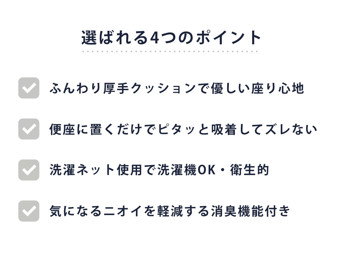 ※便座クッション自体を消臭するもので、トイレ空間全体を消臭するものではありません
