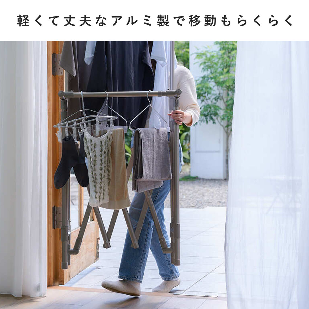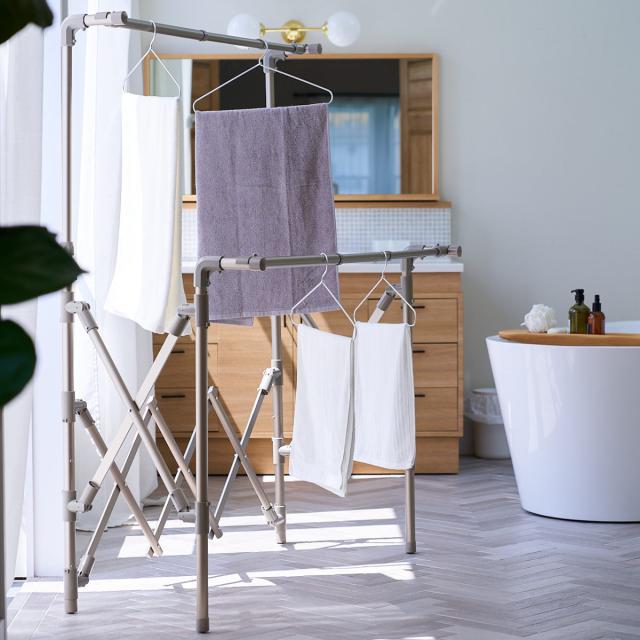室内干しはもちろん、晴れた日はベランダや庭、雨の日はリビングや浴室などで、シーンに合わせてご使用いただけます。