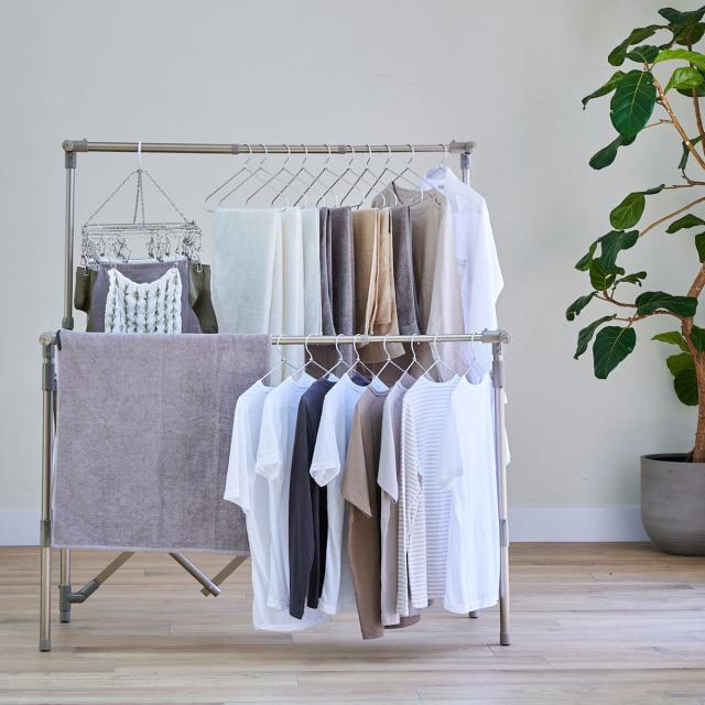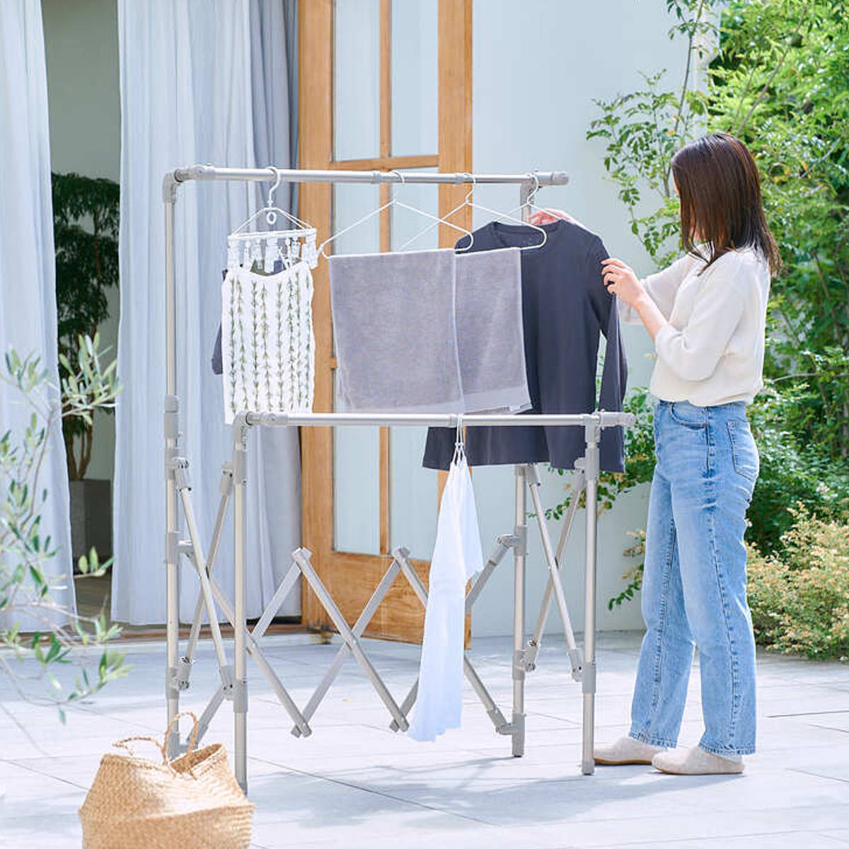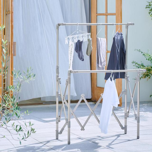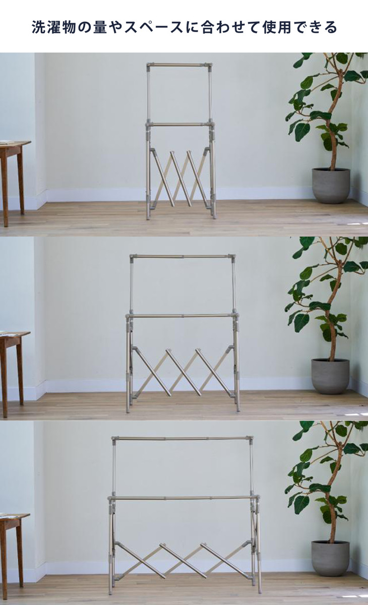 高さ、幅、奥行が伸縮自在なので、その時の洗濯物の量や干す場所など使用用途に合わせて使うことができます。