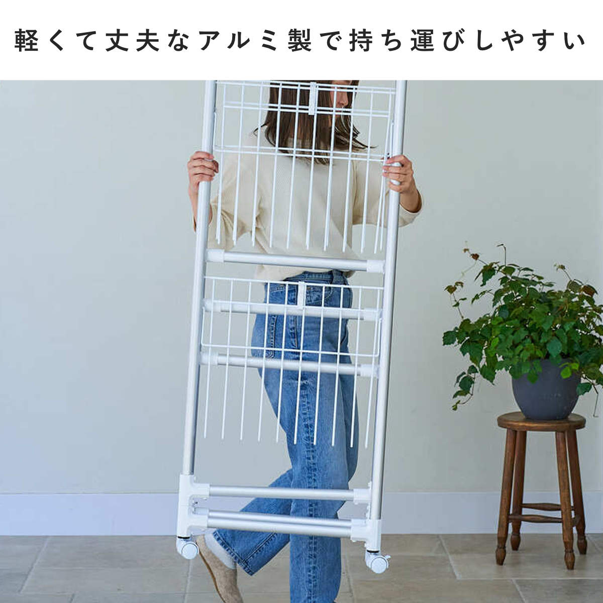 軽くて丈夫なアルミ製の物干し(コンパクトタイプ キャスター付き)です。タオル掛けは必要な分だけ広げて使えます。コンパクトサイズなので、一人暮らしの方やワンルームにお住まいの方などにおすすめです。