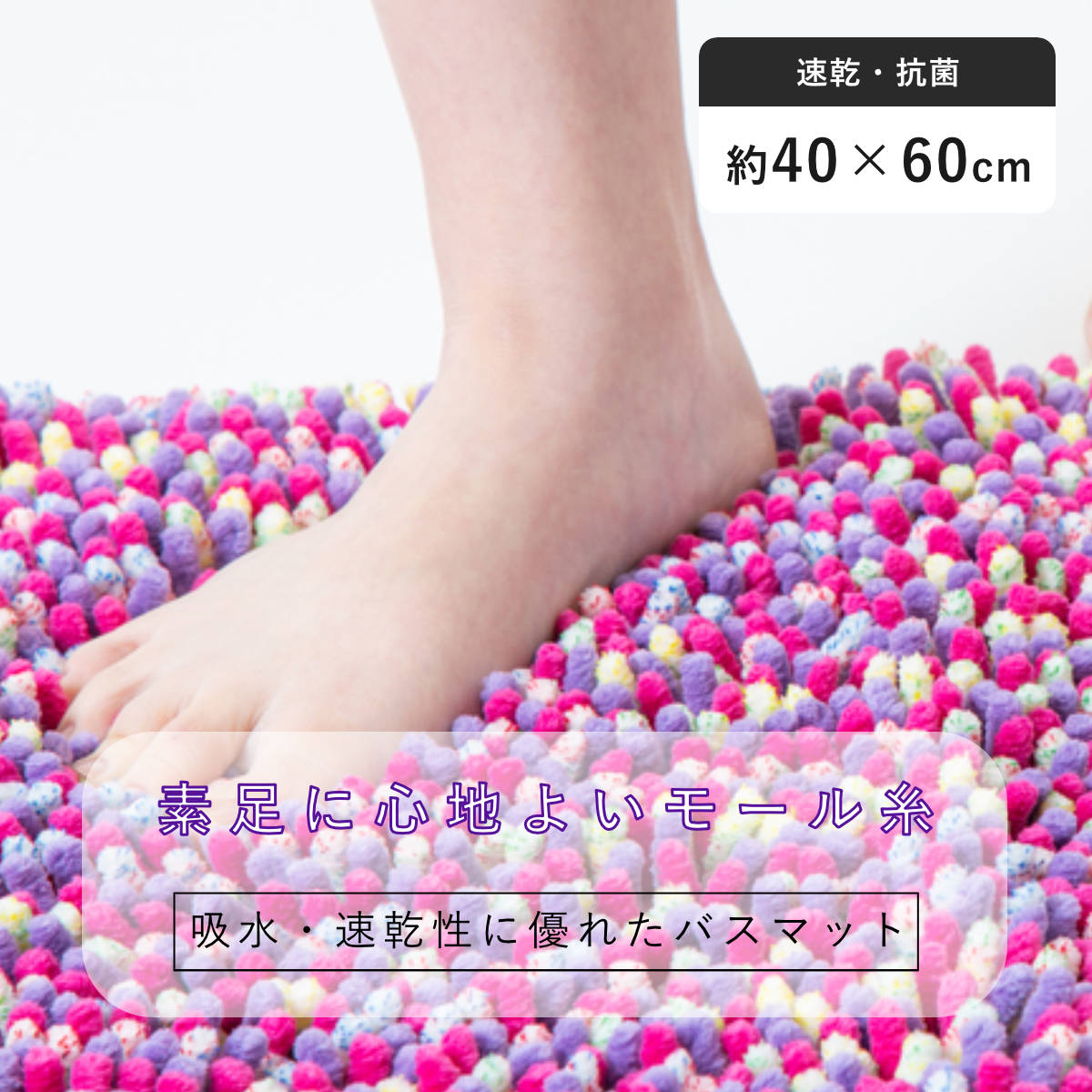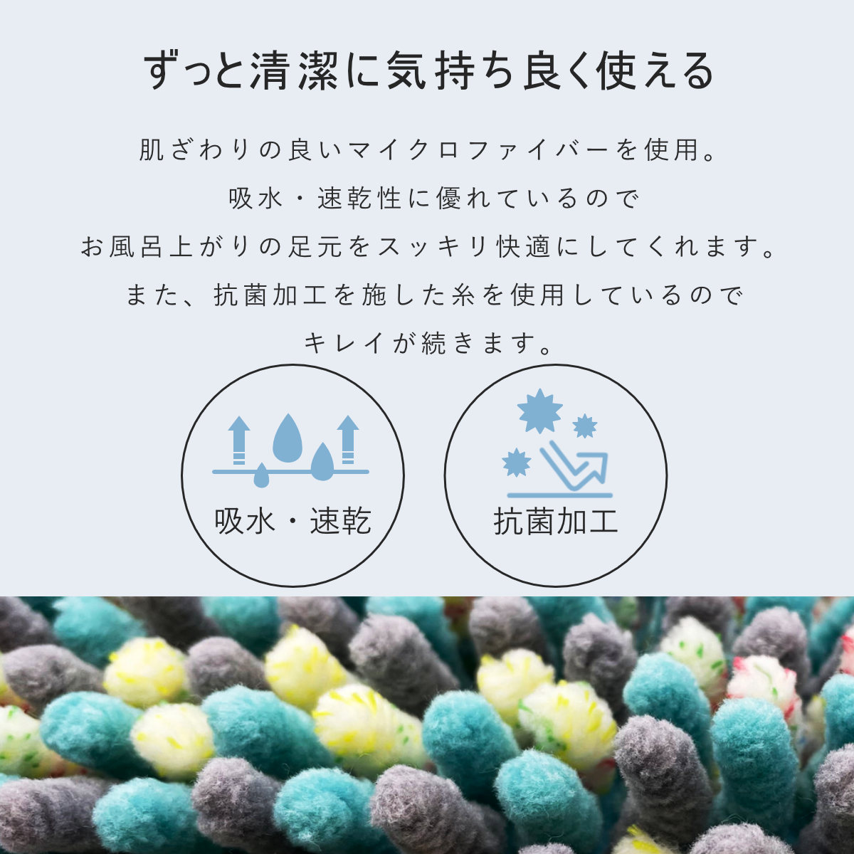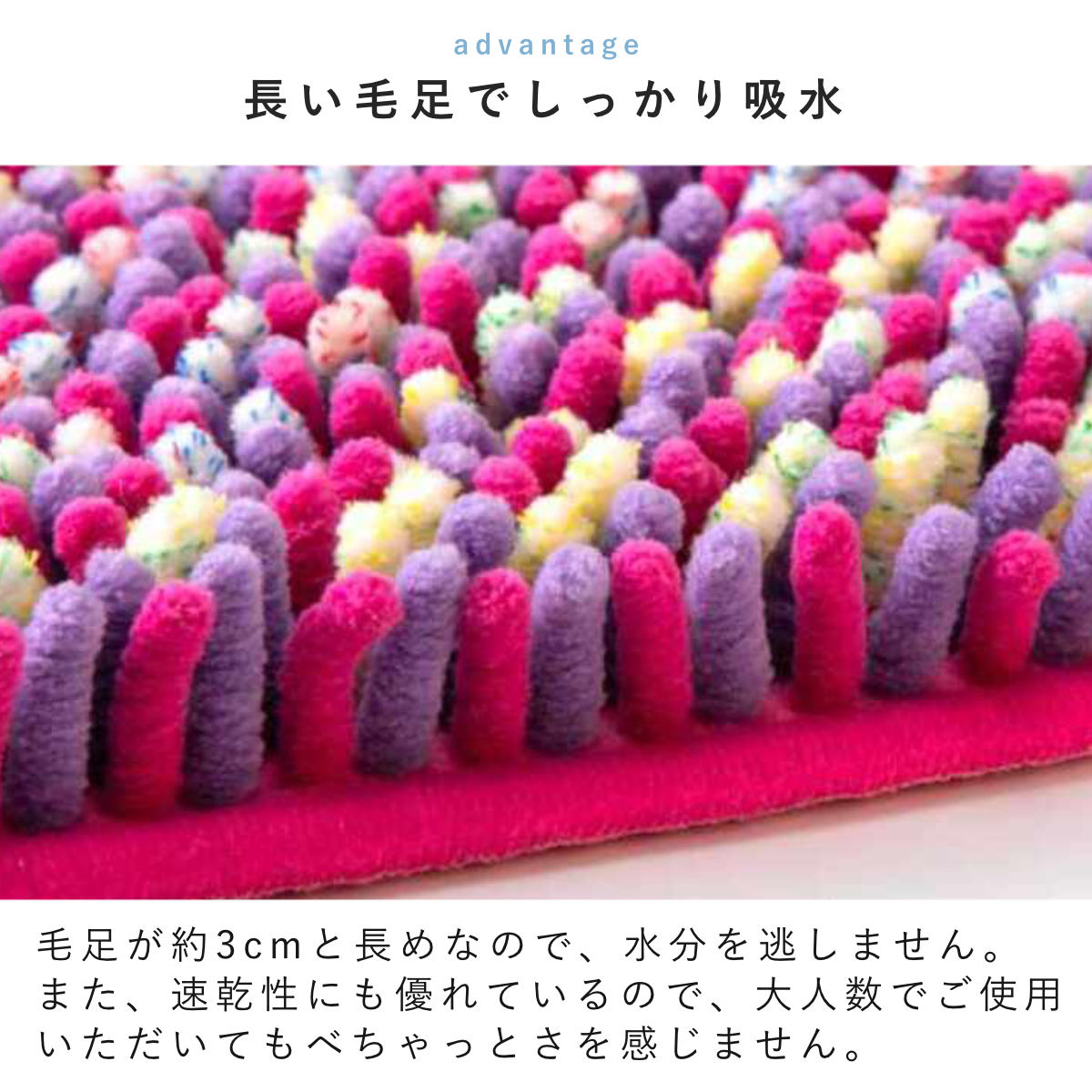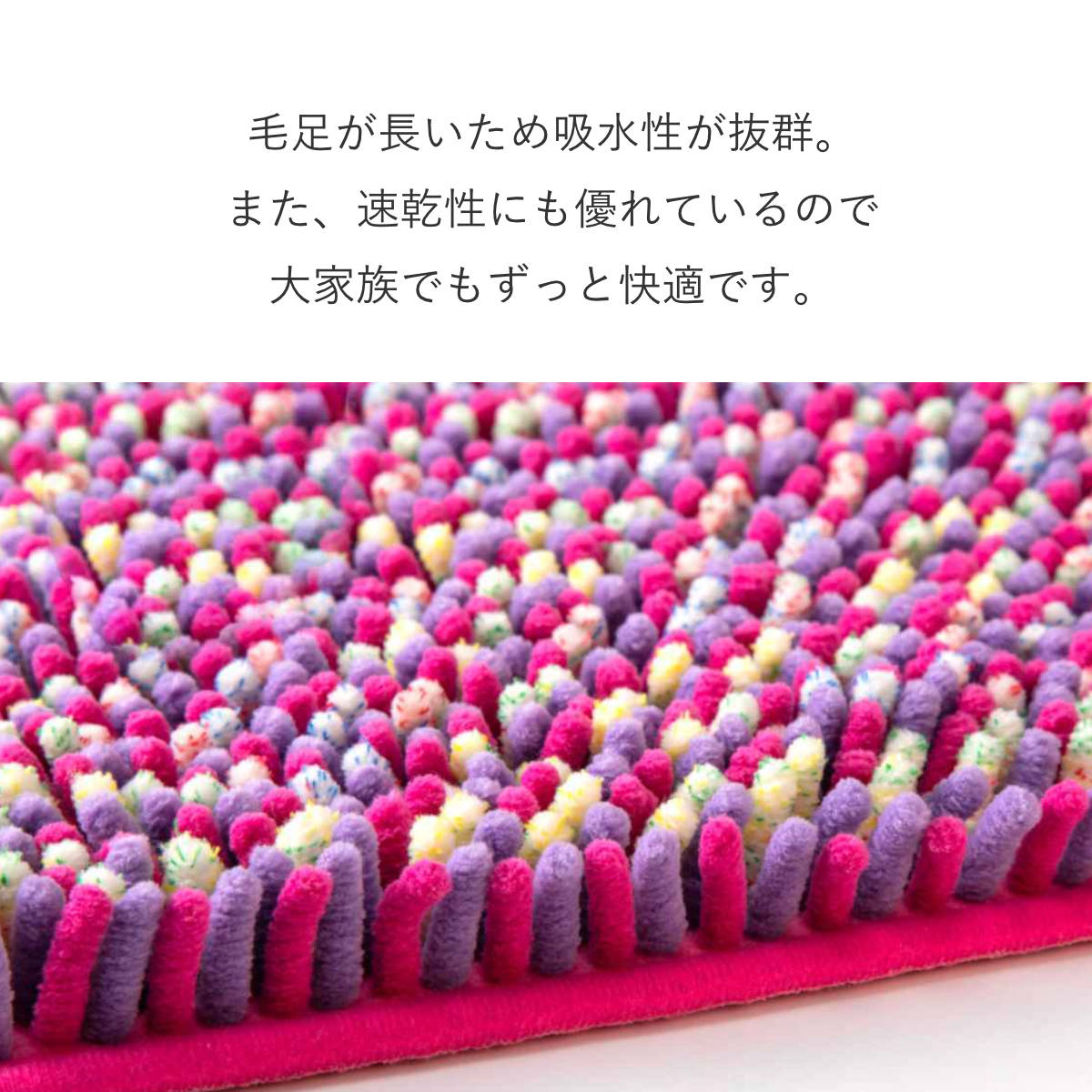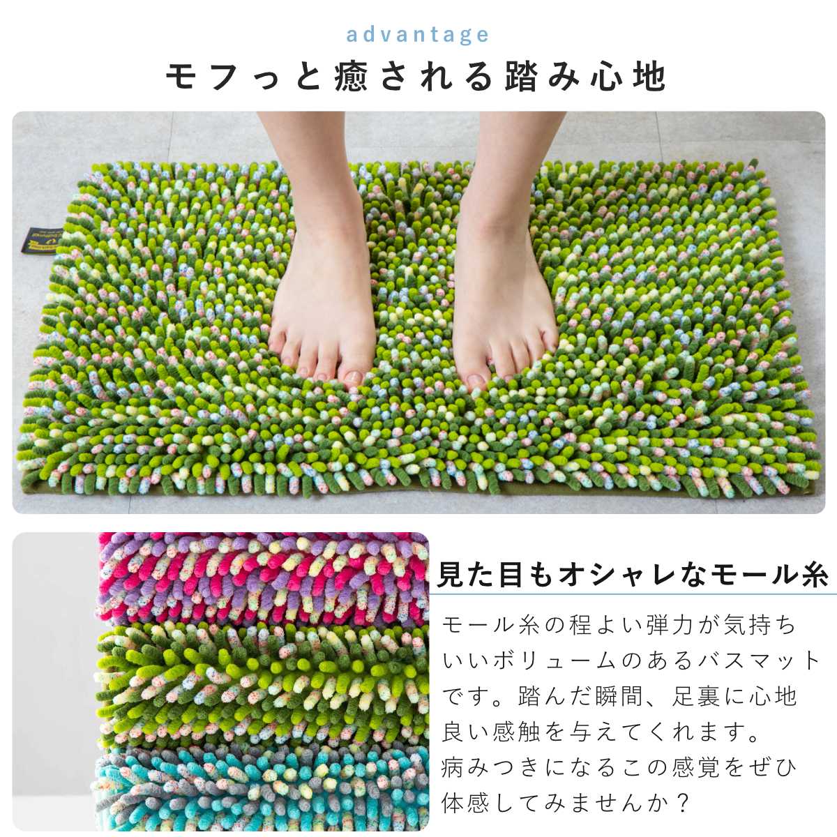 モール糸の弾力が心地良い、吸水・速乾バスマット
