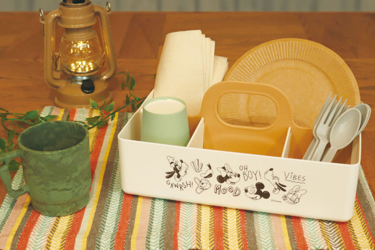 紙皿やプラスチックカトラリー、紙ナプキンなどを収納しておけば、ピクニックやアウトドアに持って行ってそのまま使えます。