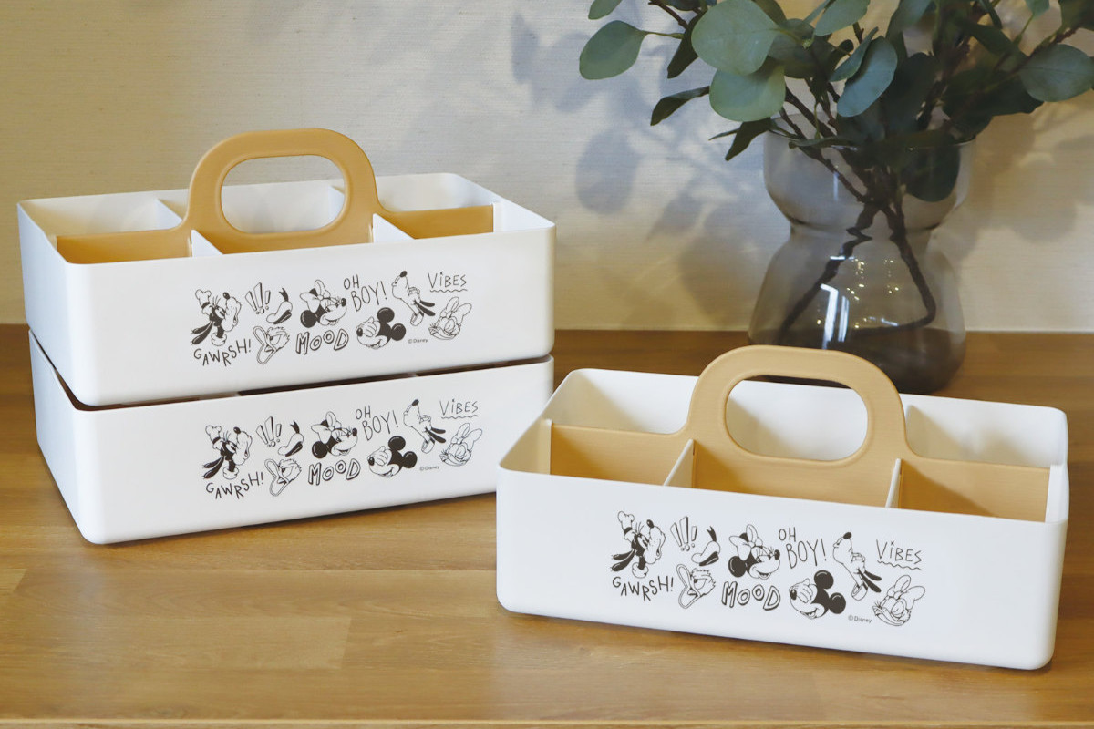 ケース真ん中のハンドルを片手でサッと持って、お家の中で手軽に持ち運べる「モッテケース」。よく移動させる小物や、気分によって場所を変えて使用したいメイク用品などを入れるのにおすすめの収納ケースです。