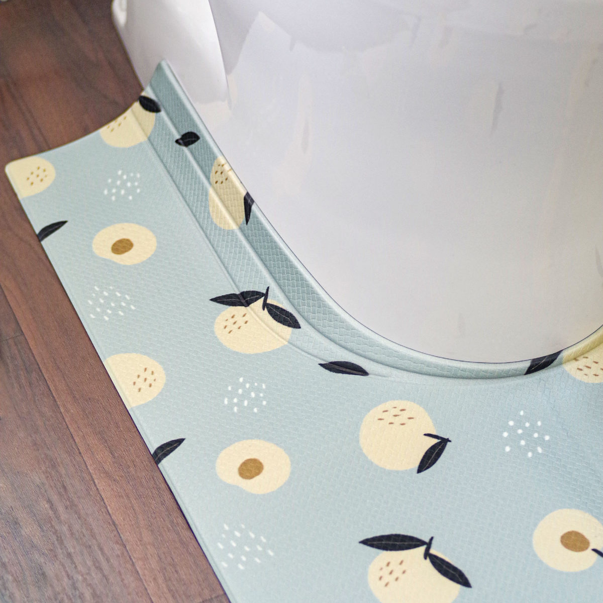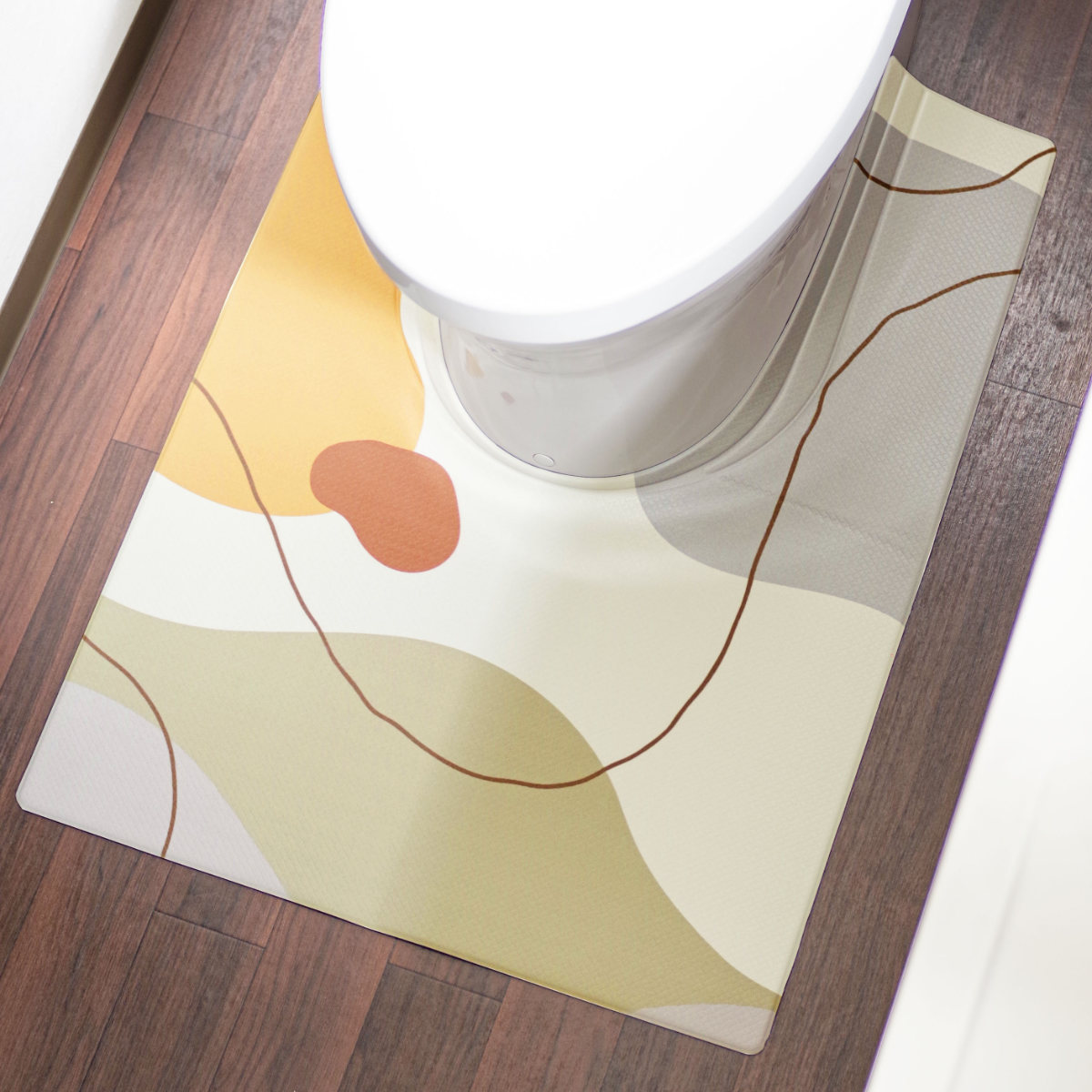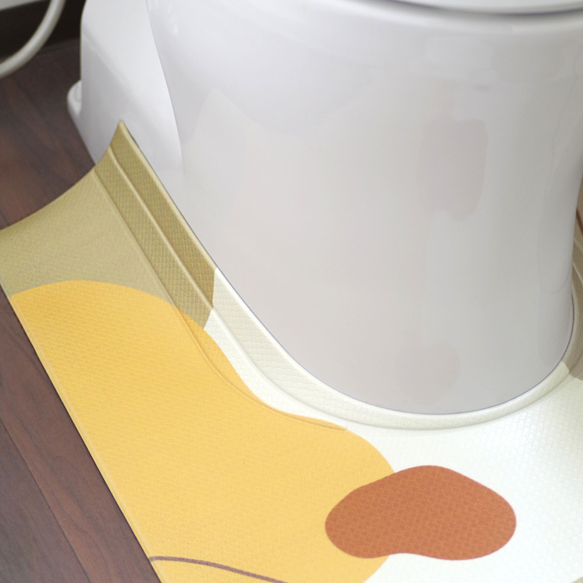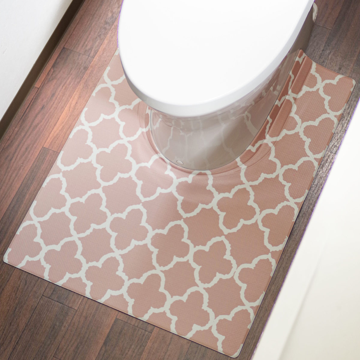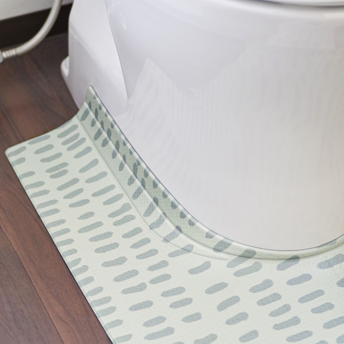 韓国風のオシャレなデザインのPVCトイレマットです。マットに付いている折り目により、隙間にぴったりフィットするので汚れをしっかりガードします。