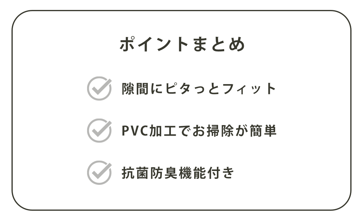 ●マットに付いている折り目で隙間にぴったりフィットして汚れを防ぎます。
