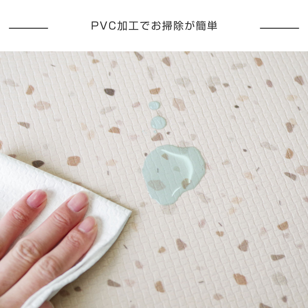 撥水効果で水を弾くので、汚れてしまってもサッとひと拭きするだけなのでお掃除がラクにできます。洗濯する必要もありません。
