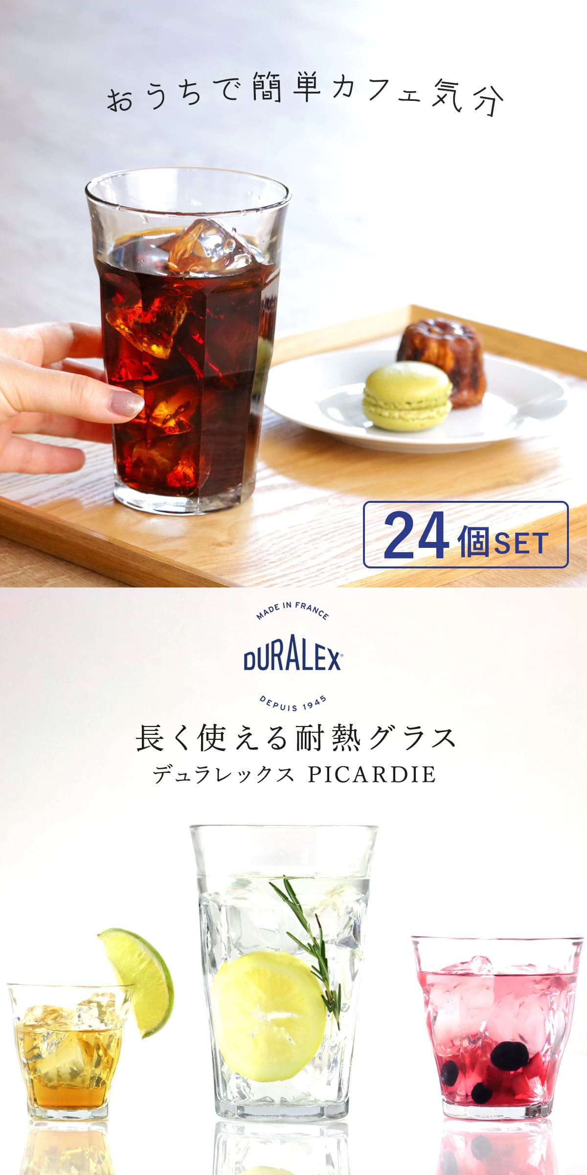 | 注意事項 | ※商品ページ内には別の商品を含む画像を使用しています DURALEX製品は、製造上、気泡やすり傷、しわ模様、飲み口の凹凸、底面の線、軽いぐらつきなどが見られる場合があります。 これらは製品の特性で、ご使用には問題ありません。 そのため、不良品ではなく返品・交換の対象外となります。 あらかじめご了承のうえ、ご購入をお願いいたします。 |