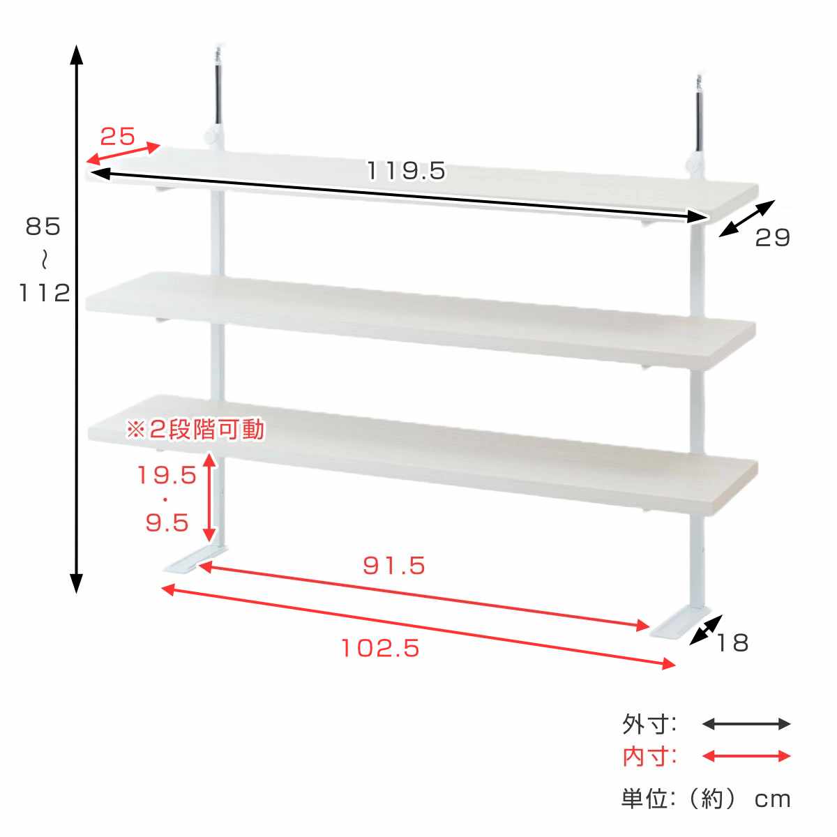 - 約幅119.5×奥行29(脚部18)×高さ85~112cm